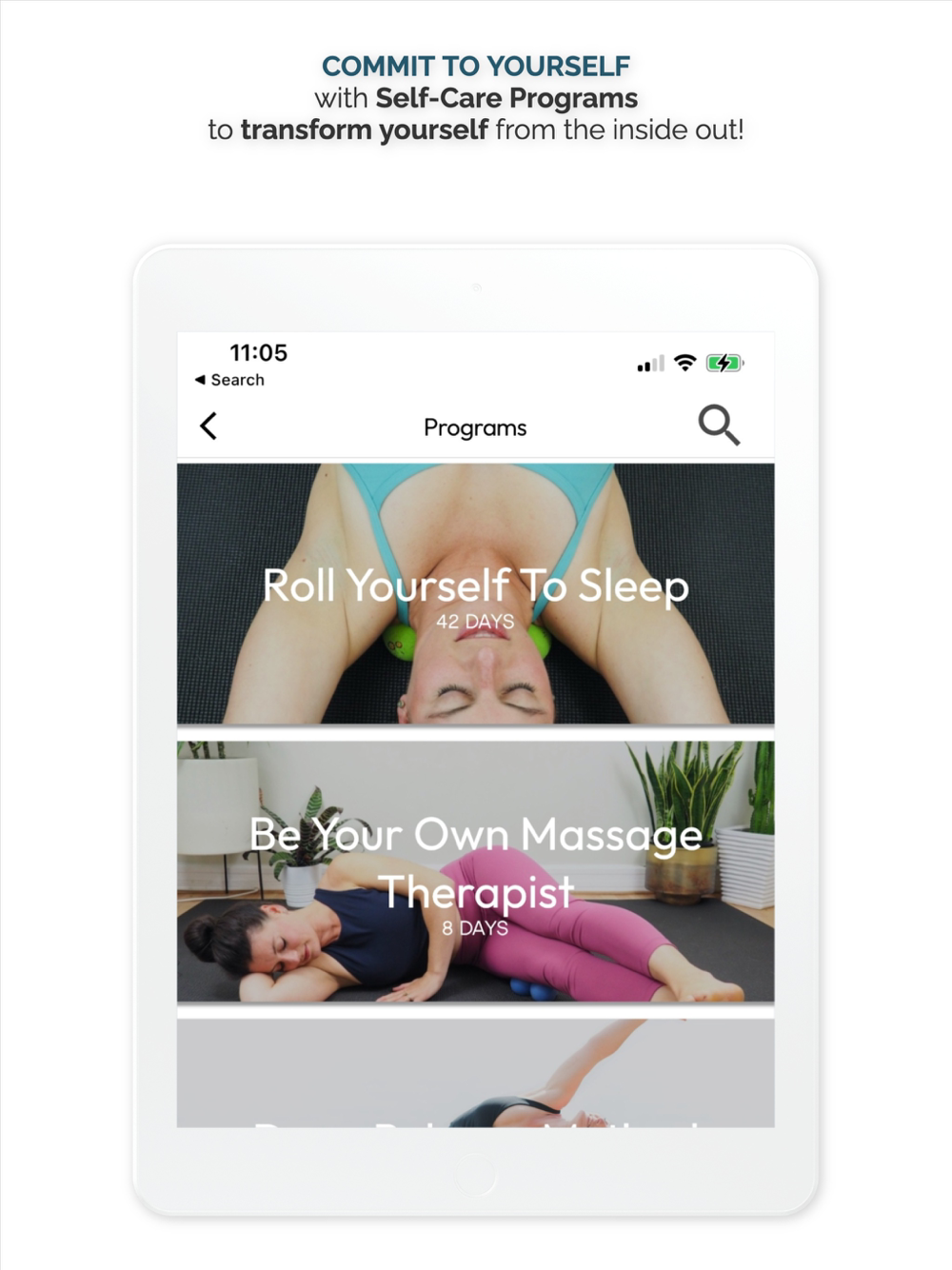With self-care practices including follow along yoga, self myofascial release, and mindfulness classes ranging from 5-60 minutes.