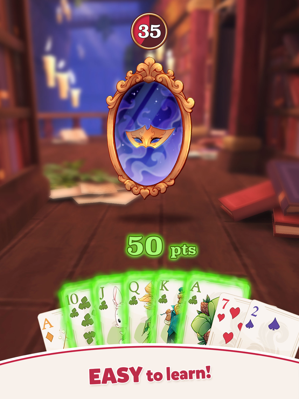 Only you can help these fantasy stories from your past come to life! Solve rummy and solitaire puzzles to help heroes escape the evil in the library!