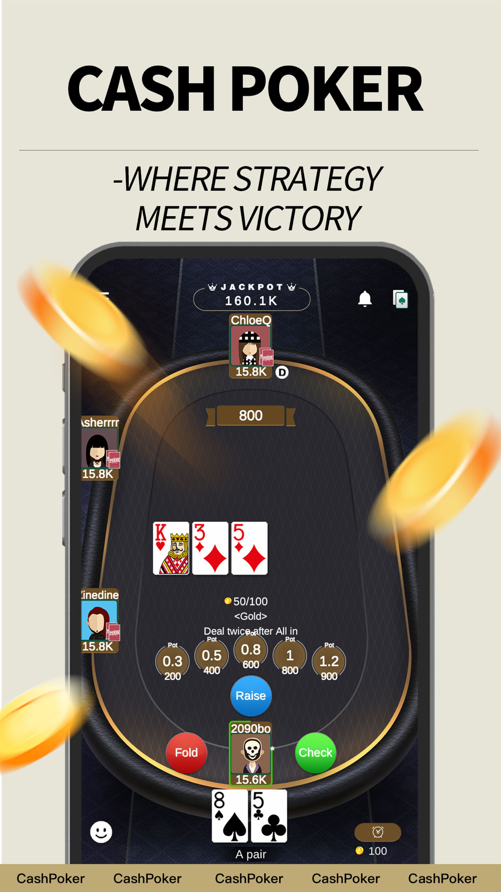 Welcome to CashPoker! Whether you prefer casual Texas holdem poker among friends or competitive arena with global players, CashPoker is always your home for authentic gameplay!