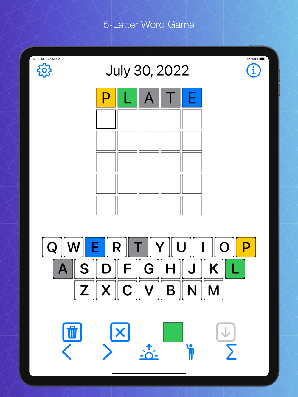 Seven up-date changes to iErudition:-Keep your guesses/strategies private by blacking out your color hints before sharing your games with others. Touch the cells to highlight. All highlighted cells will have the color black displayed when sharing instead of the assigned cell color.-Populate 1st Guess is added to the game options. Selecting this option results in the 1st guess being populated with the 1st guess used in your most recently completed game. You must still hit the submit button to enter this guess. This feature is for individuals that use the same starting guess each time they play.-The statistics screen now has the option to view the dates/scores for all your completed games and gives you the option to download, to, share with others or add to a spreadsheet.-A virtual game for two players is added to the game options. You no longer have to play just a solitaire game but can challenge a virtual game against a friend to see who is able to find the mystery answer in the fewest guesses.-Smart Mode is added to the game options. Selecting this mode prevents you from forgetting to use correct clues that you've already guessed. This option can be turned off or on during any current games. Examples of color hint errors are listed on the information screen.-The game now checks each guess to see if any color hints are violated. When a game is completed and no color hints are violated, a gold star will be attached to your score indicating a perfect game was played. This gold star will also be shown when sharing your results with others.-The game now uses the CSW dictionary for word validation instead of the TWL dictionary.