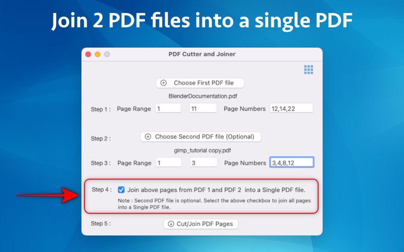 - Join the pages of choice from 2 separate PDF files into a single PDF file.