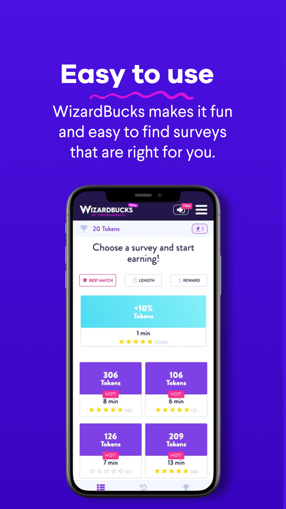 Taking paid surveys is really simple. WizardBucks matches you with surveys from real companies wanting your opinion. You'll earn WB for your time answering questions, which you can then redeem for cash debit and gift cards.
