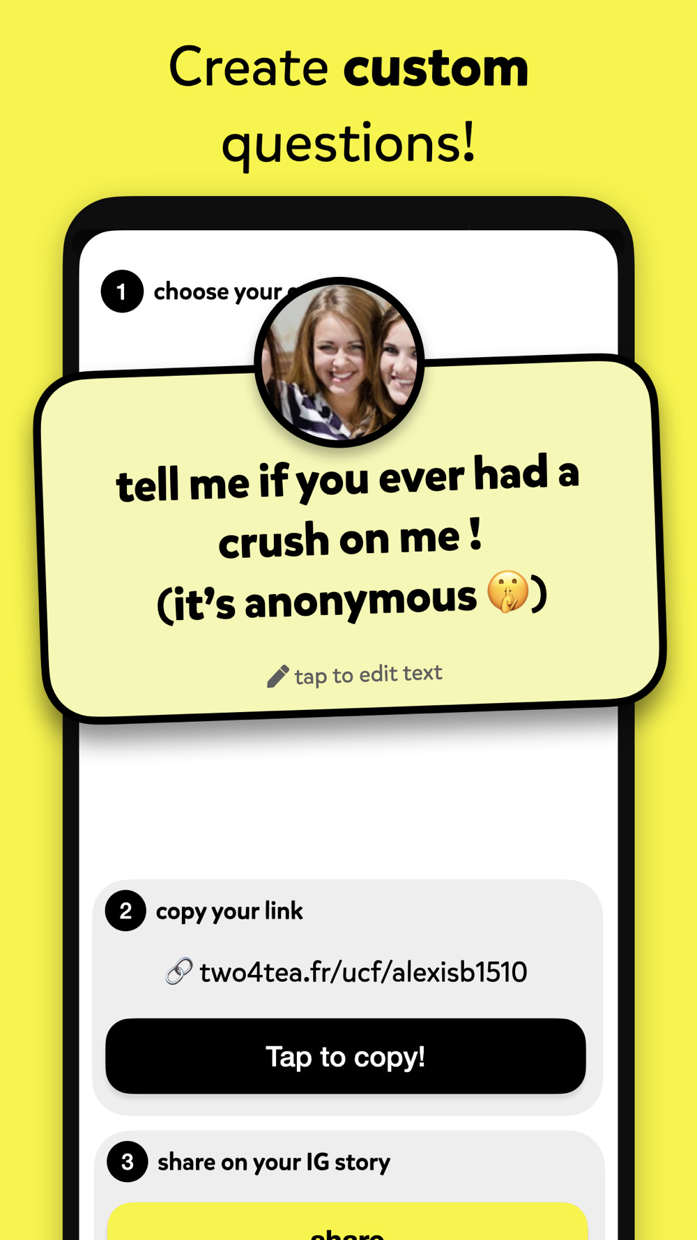 Want to know if someone has a secret crush on you? What your friends really think of you? You believe someone never dared tell you something IRL?