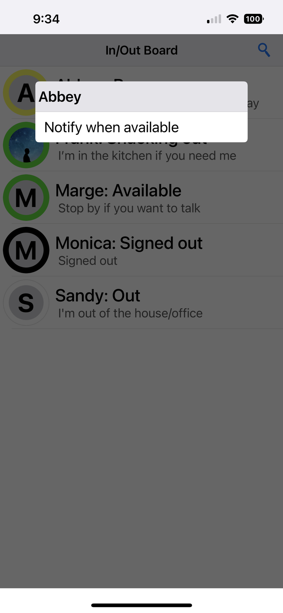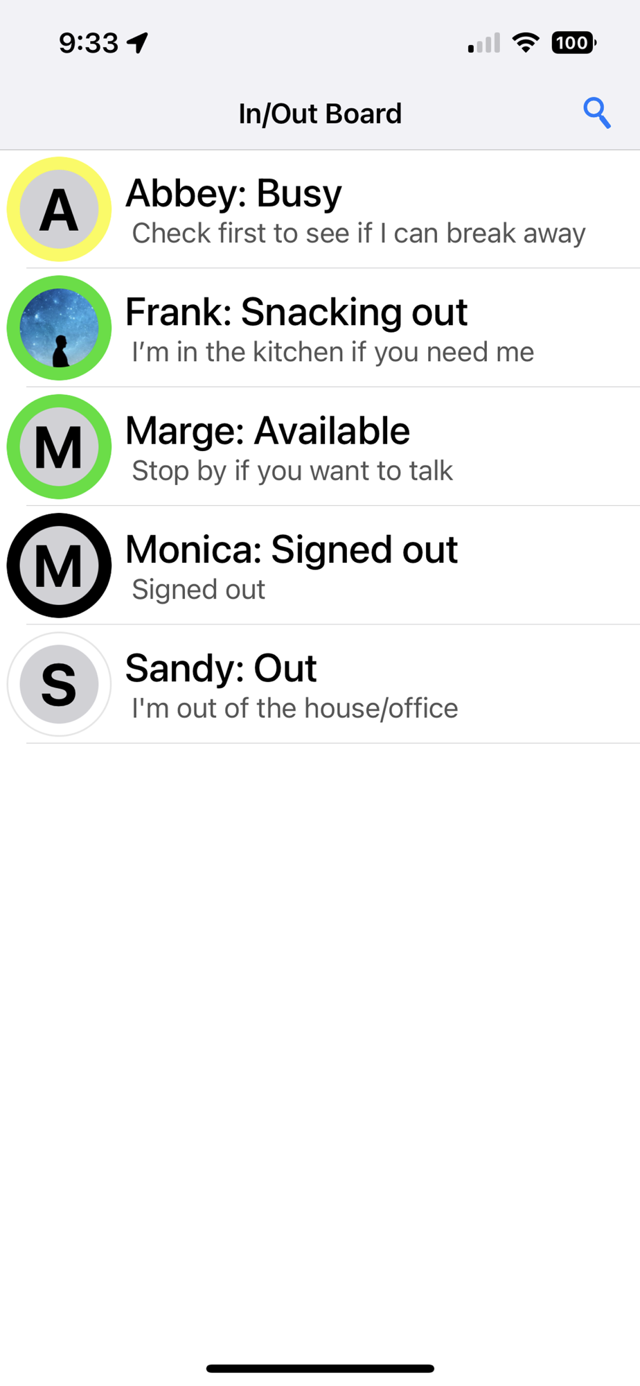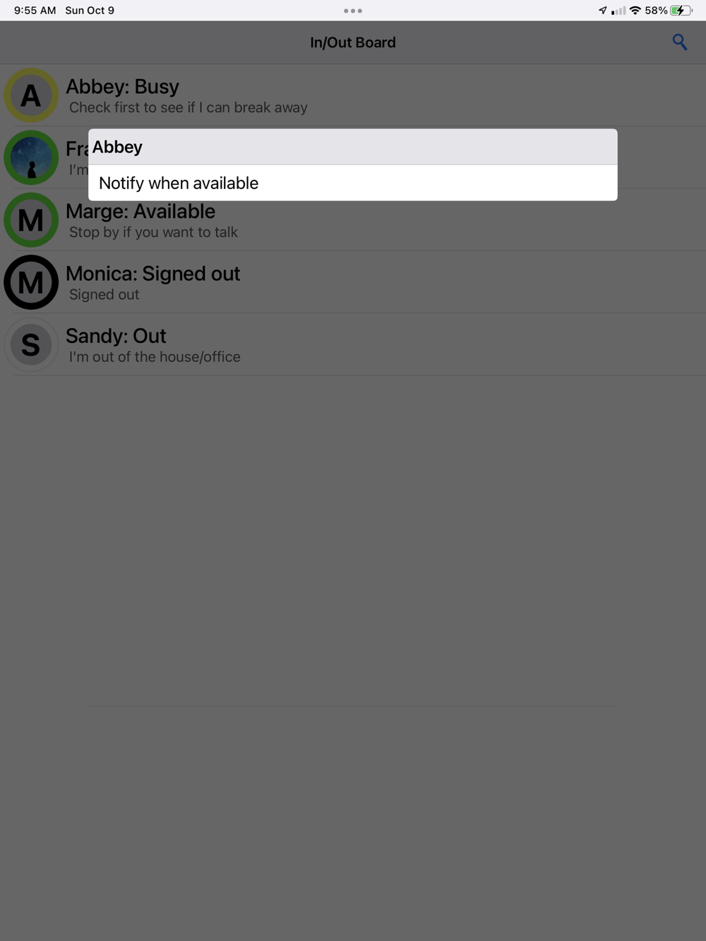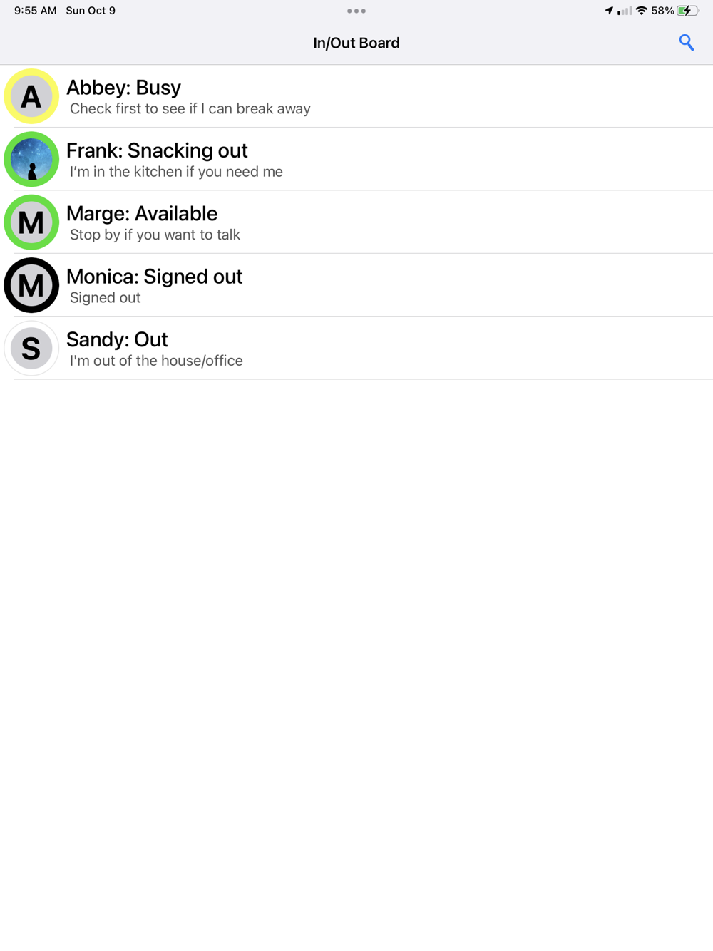 RU Busy shows at a glance whether someone else in your shared space is available, can't be disturbed, etc. You can: