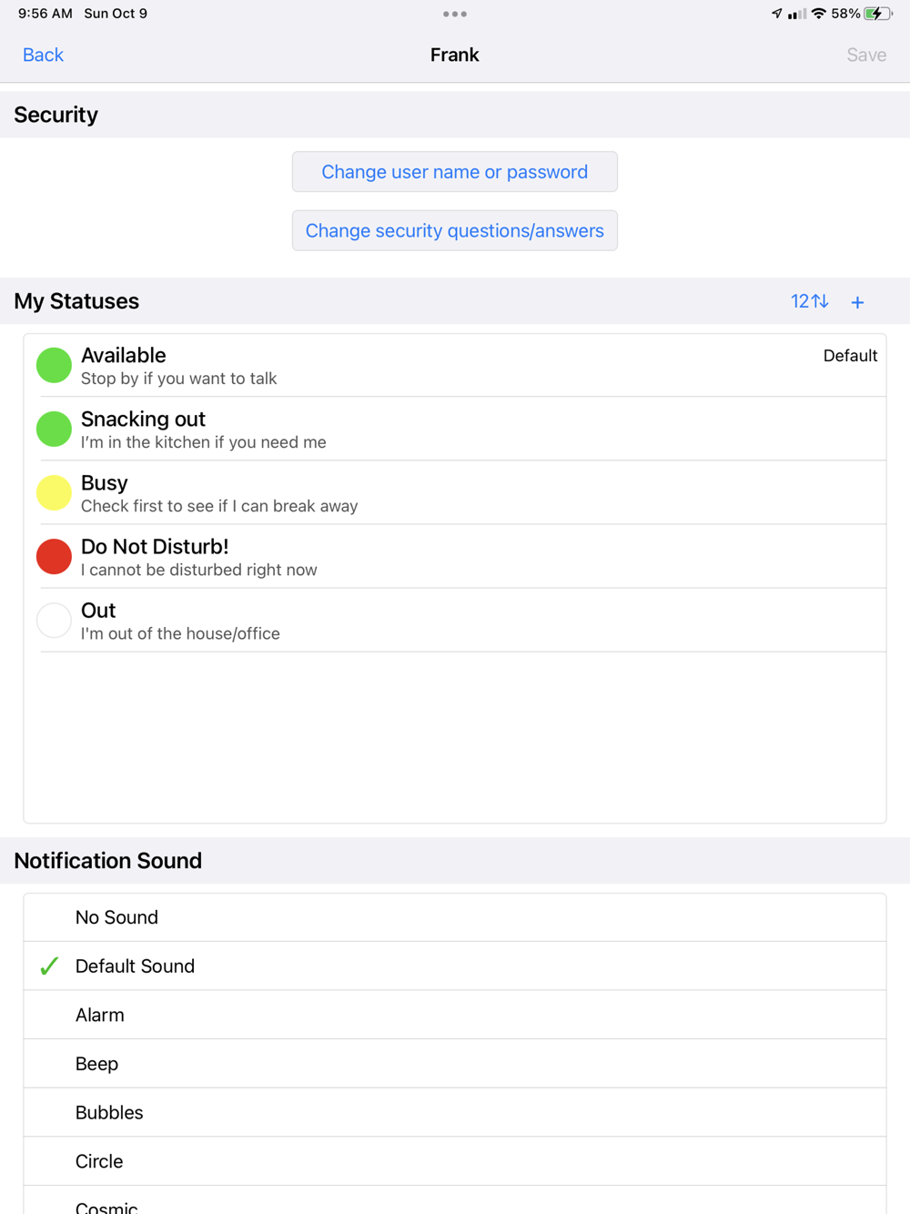 - Have as many statuses as you want (for example, you can just be "Available", or you can be "Having a snack" and let everyone know you're in the kitchen)