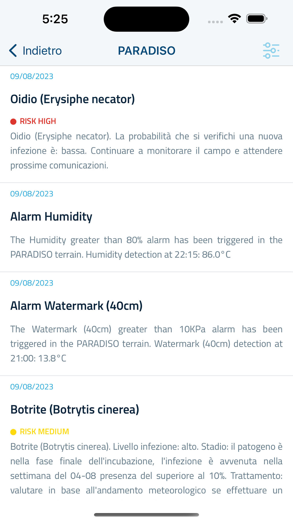- punctual historical archive of climate data recorded on every plot of land on the farm