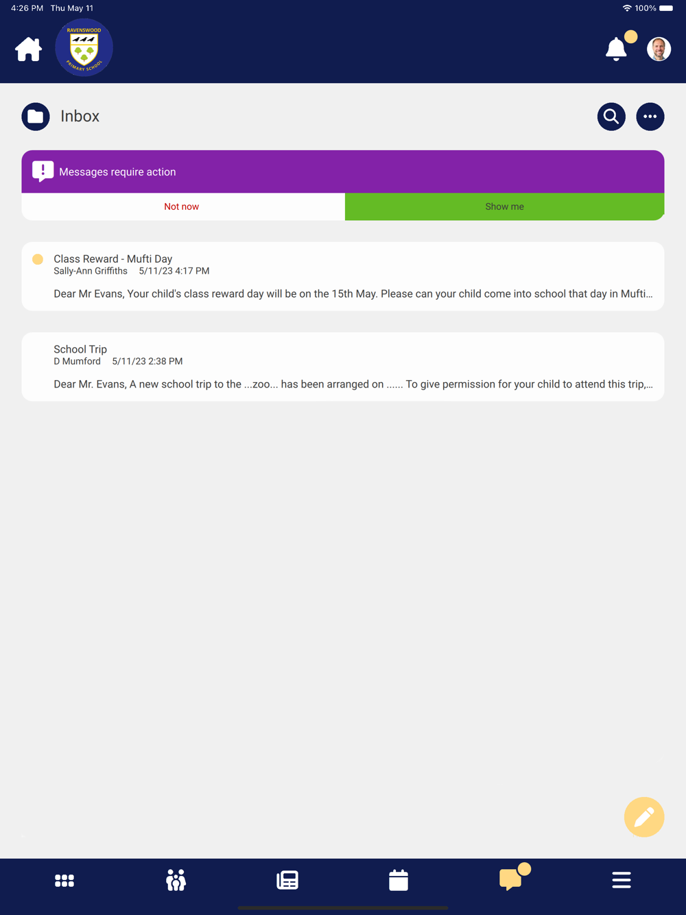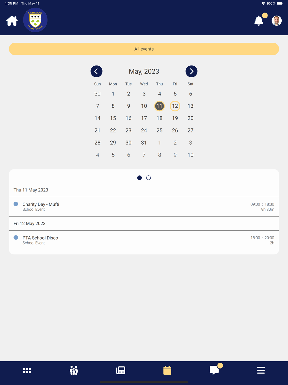 - View the school calendar and noticeboard, with information relevant to you and your child.