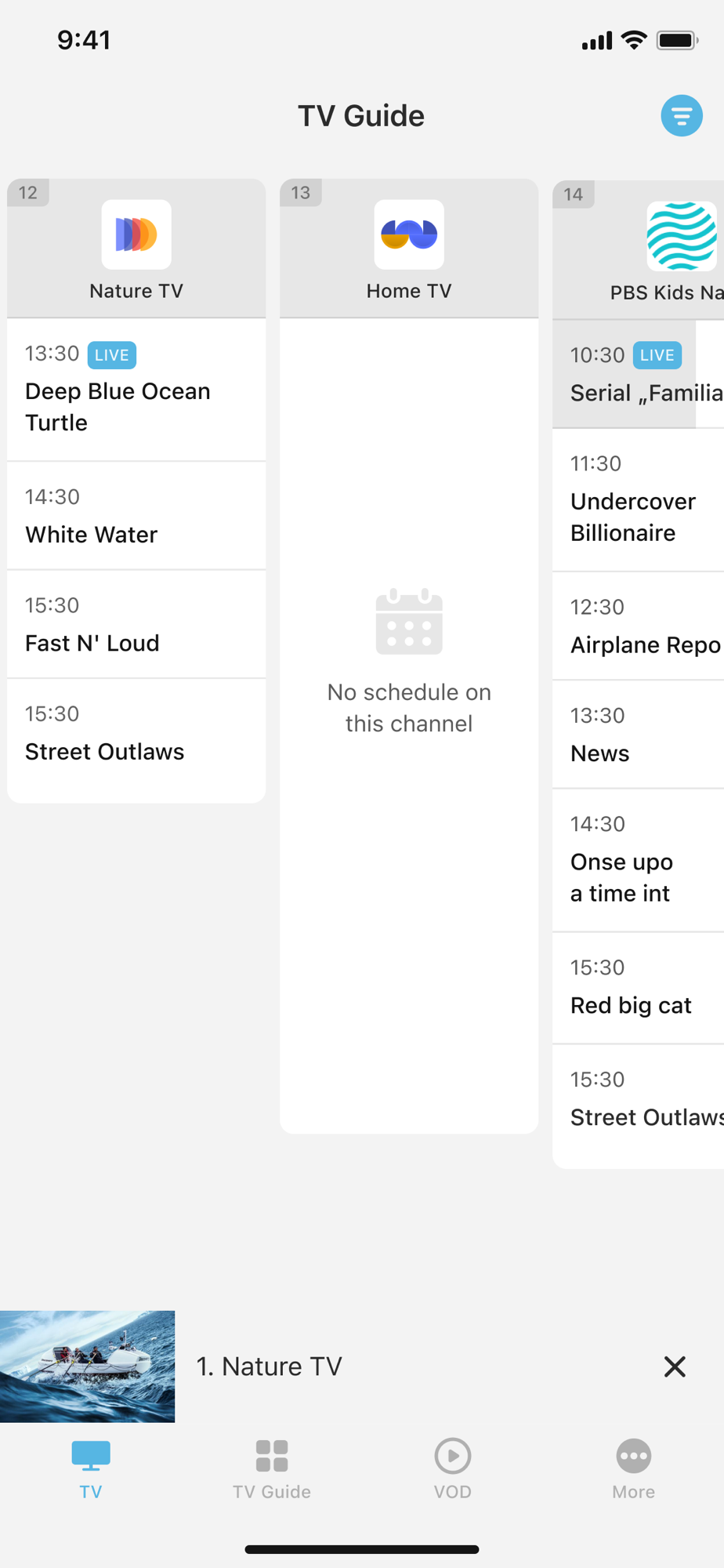 To access any of the features subscribe to our monthly or yearly plan and enjoy Linear TV, Catch up TV, VOD, multi audio tracks, subtitles, Time shift, Reminder. All this in a redesigned app, suited for mobile experience.