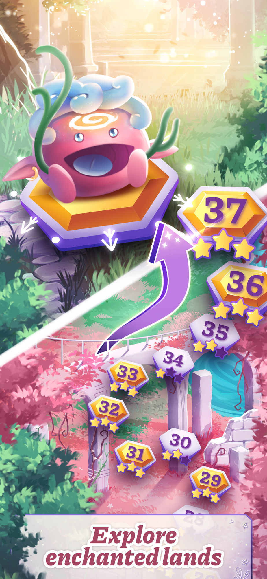 Match 3 spell cards and clear the board to pass levels. Only by unlocking new matching tile game levels will you be able to free the land from the black magic of the evil sorceress! Follow the thrilling story, meet Zoey the Witch and other adorable creatures living in the magical forest and match 3 tiles at a time until you connect them all. Start your mahjong journey now!
