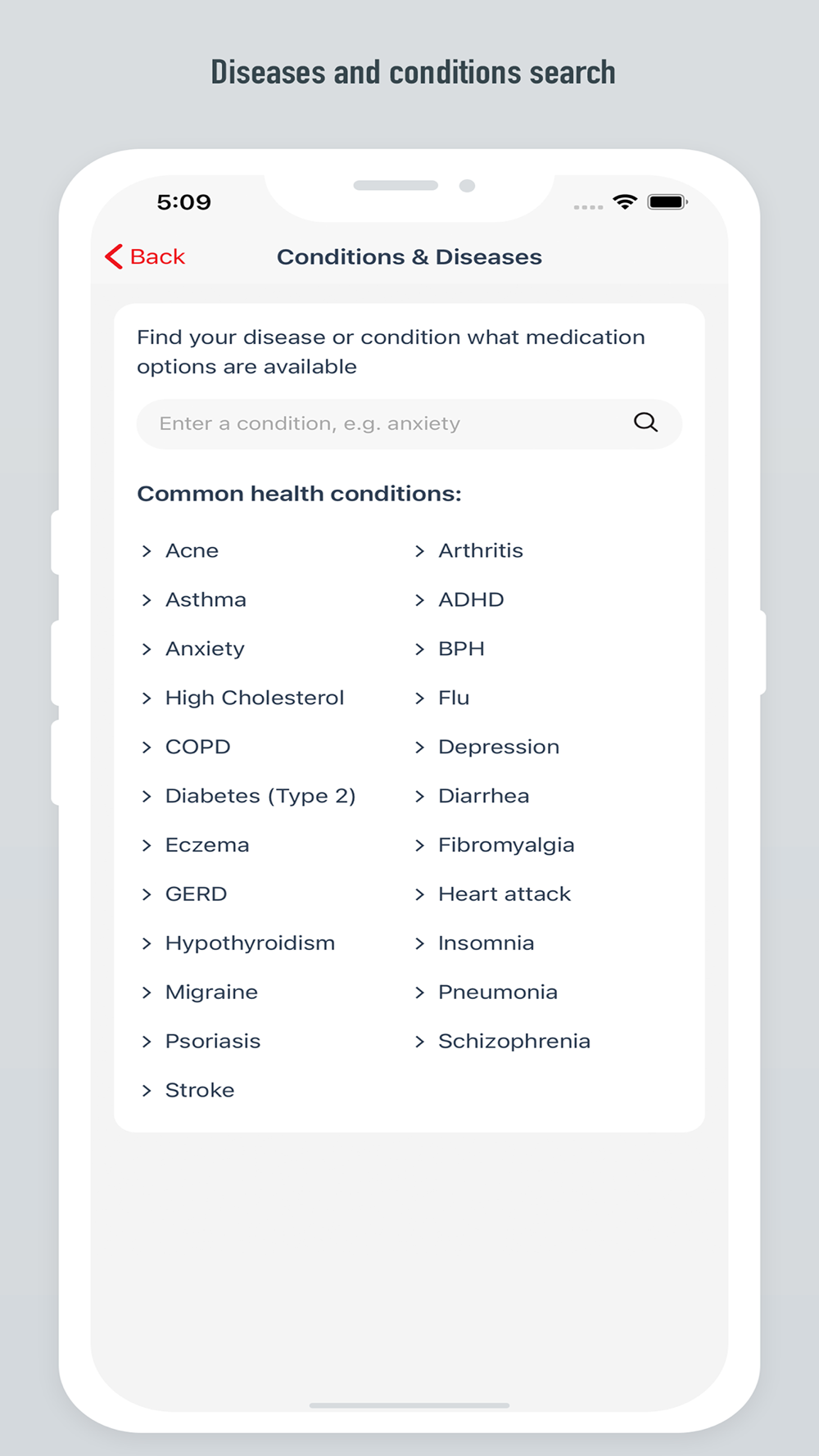 Utilize the powerful search function to quickly find drugs based on their names, categories, or medical conditions they treat. The app provides a seamless search experience to find the information you need.