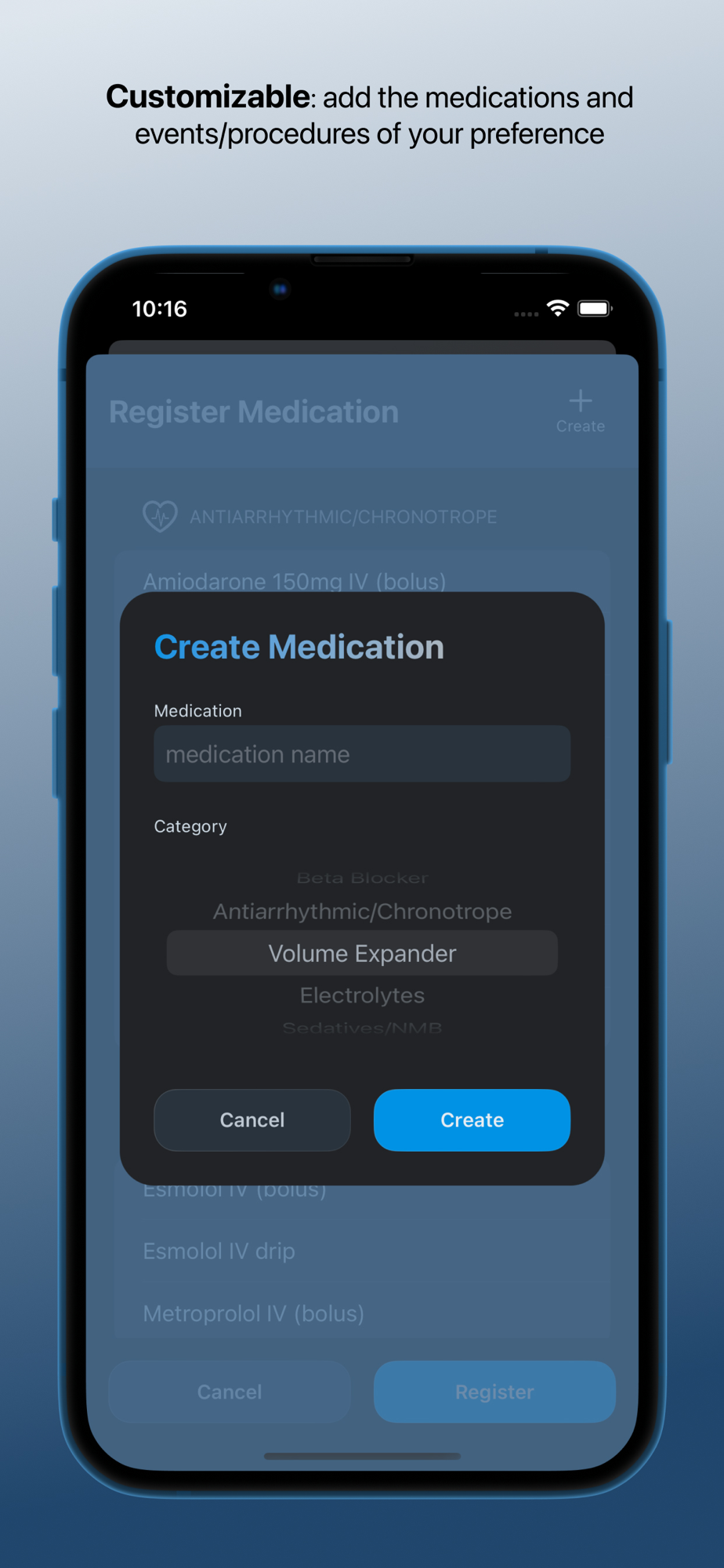 - CUSTOMIZABLE: add the medications, events and procedures of your choice, or use the comprehensive list of defaults already available.