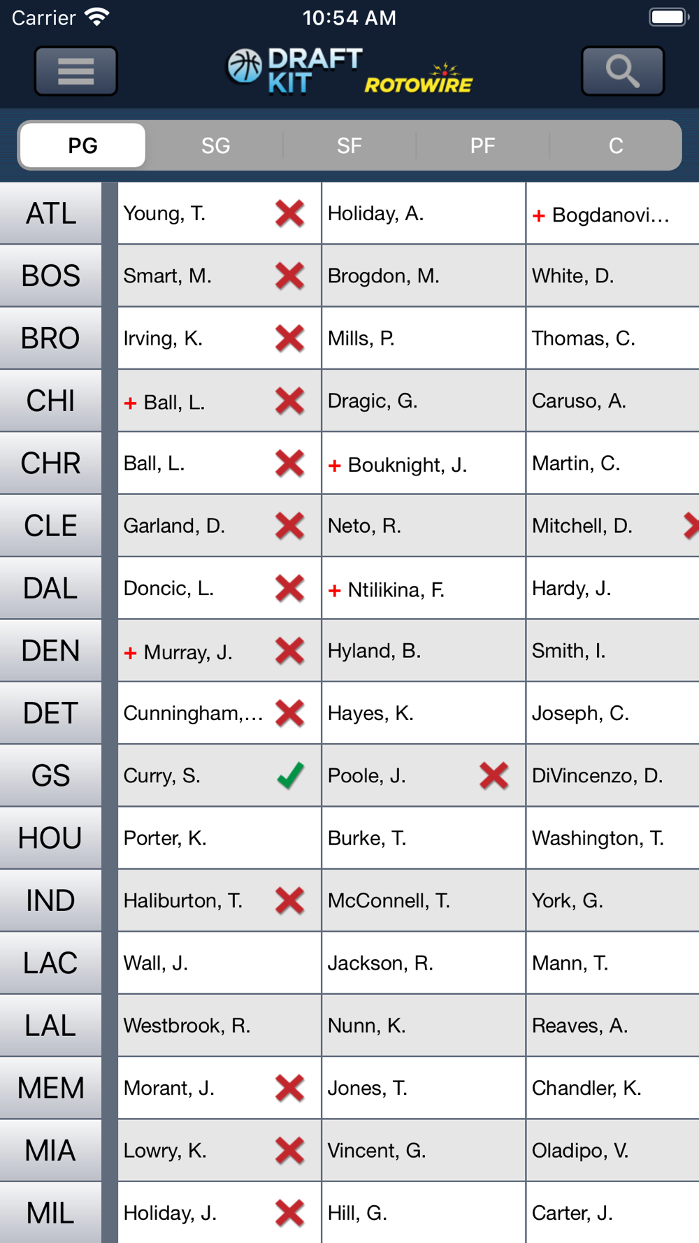- Roster spots including: C, G, PG, SG, F, PF, SF, F/C, PF/C, G/F, SG/SF, Utility, Reserves