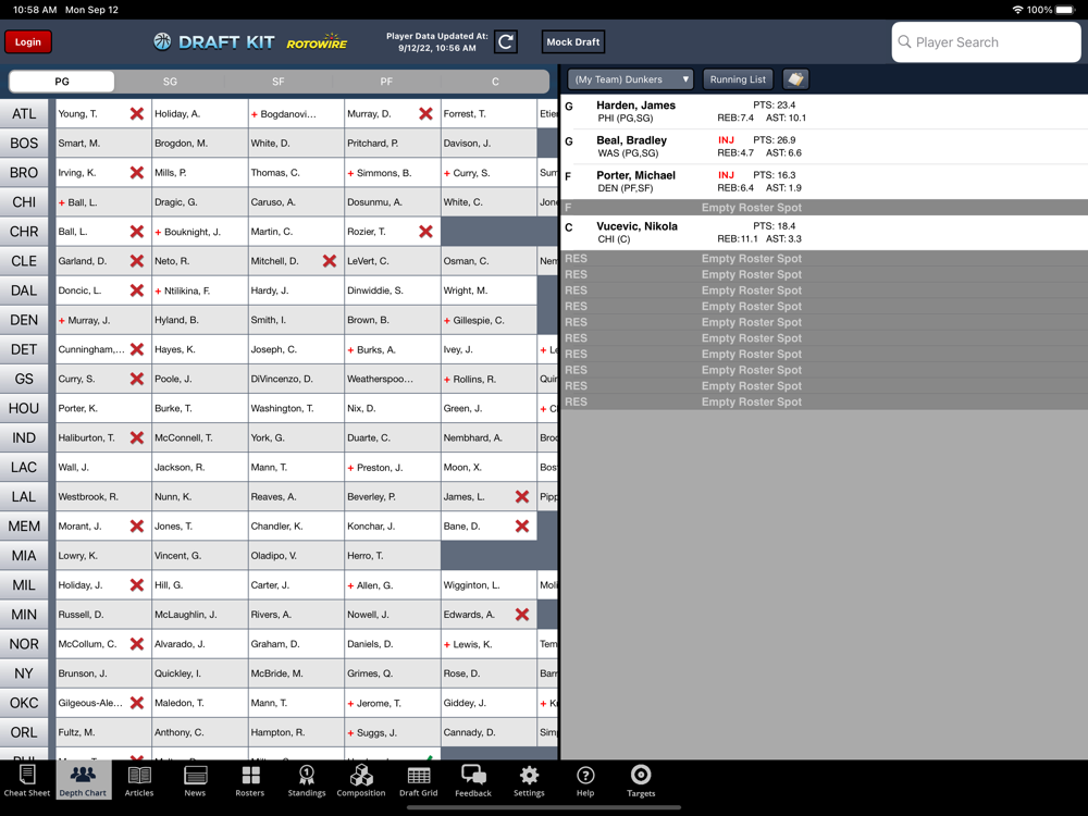 Imagine getting a cheat sheet that adjusts to fit your league settings, allows you to mark off players during your draft AND provides up-to-date player news. That’s exactly what the 2022 RotoWire Fantasy Basketball Draft Kit can do for you. It’s a one-stop shop for everything you need to dominate during your draft.