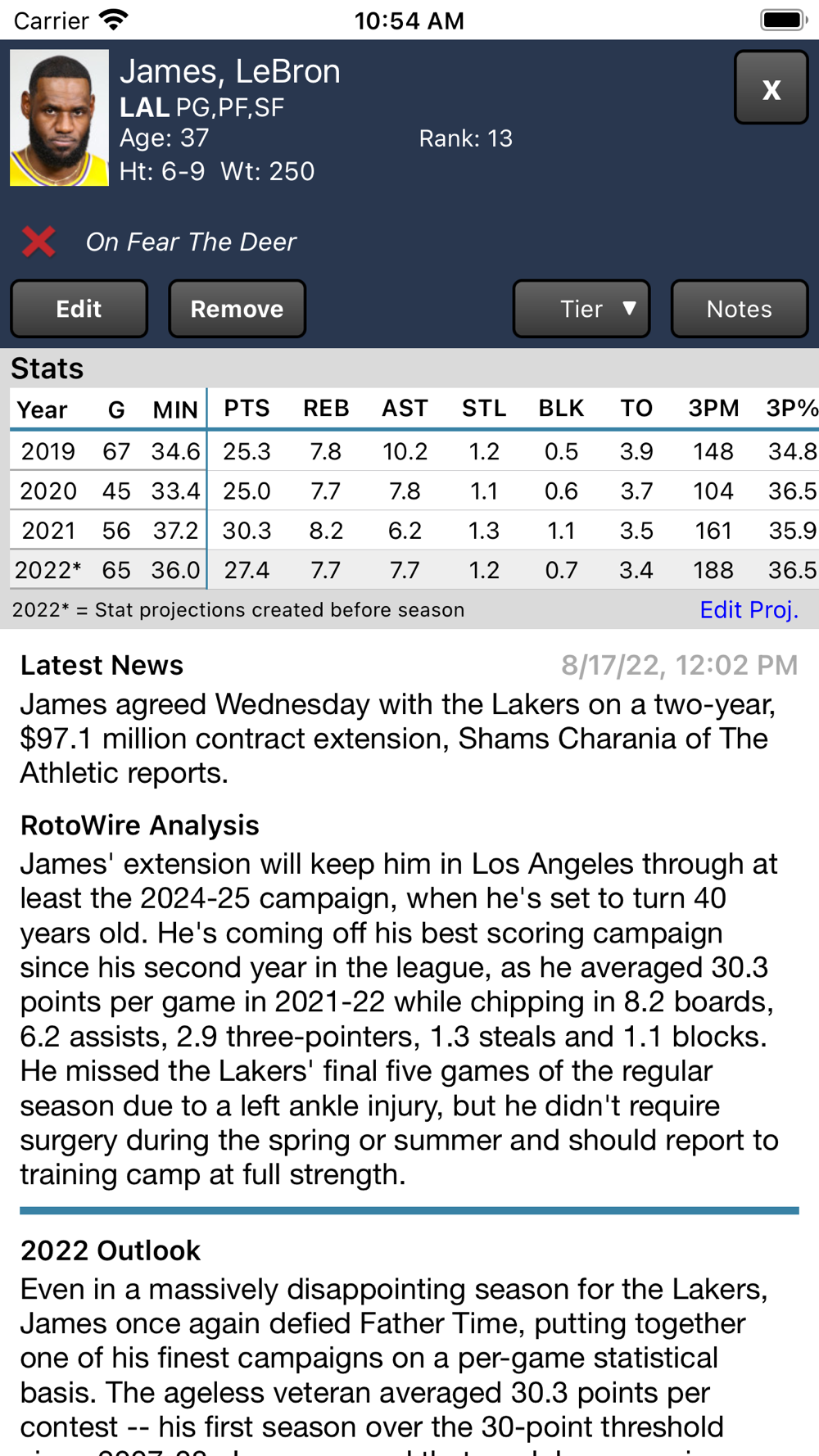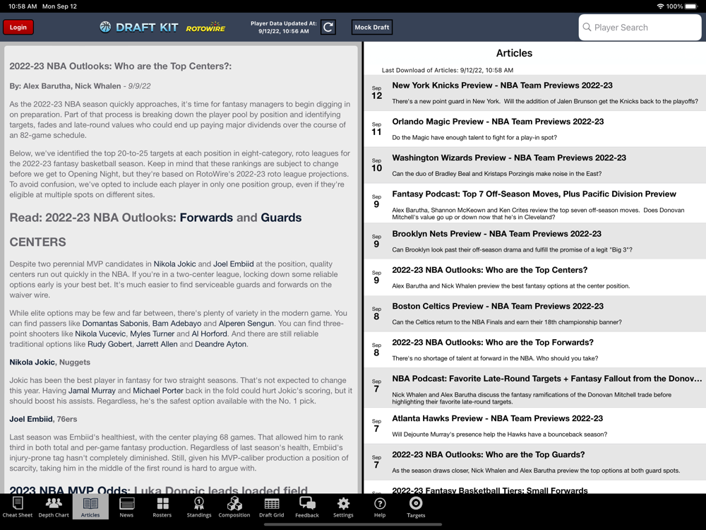 - RotoWire.com outlooks for the 2022-23 season for over a hundred players. You can't get that in ANY other app.
