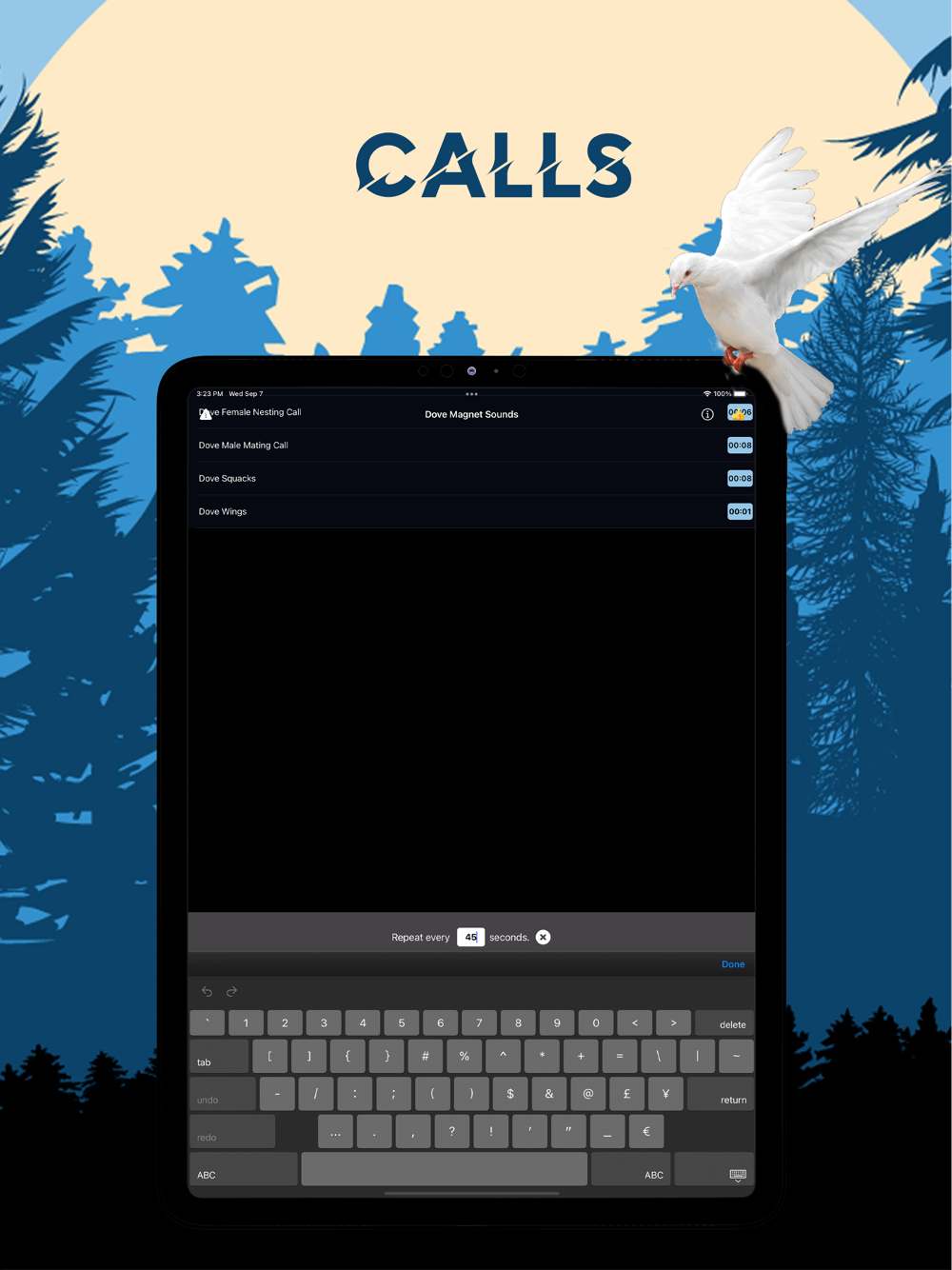 You can play the sounds individually and set them to repeat after the amount of seconds that you desire. Or you can manually tap different dove hunting calls to create a deadly combination of calls that will work perfectly for the doves you are hunting.