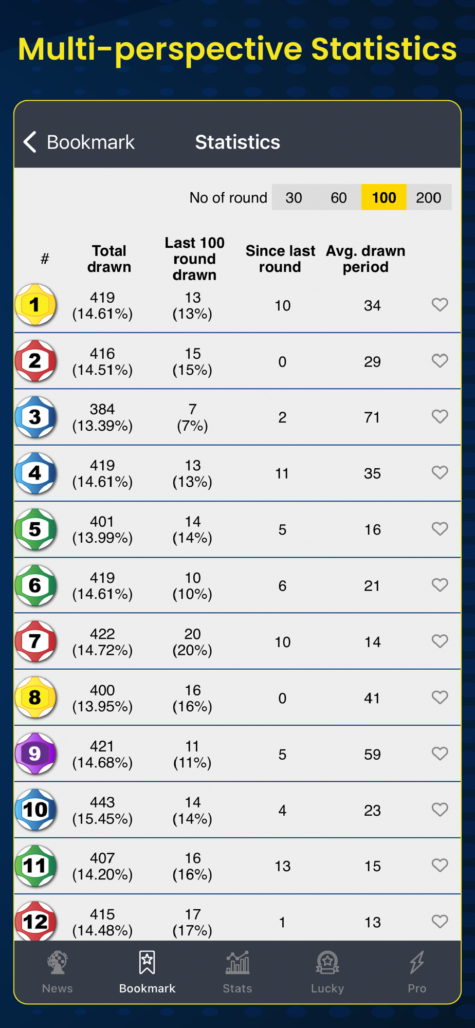Analyze the occurrence from past result and visualise in multi-perspective statistics which helps you to pick numbers effectively