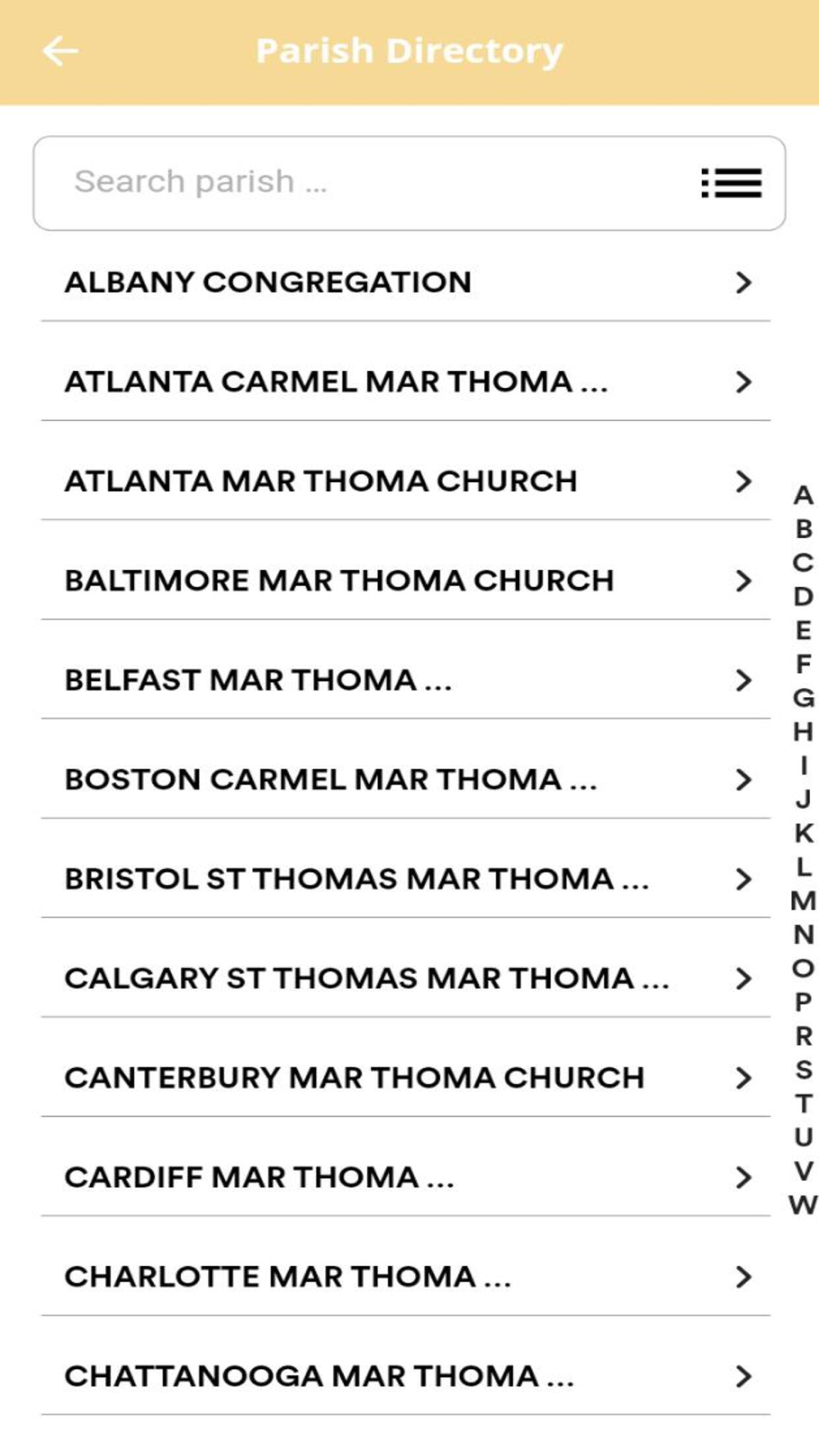 All the members of the community can be found through this app and can be searched based on parish name, Vicar Name, city, state, and zip code.