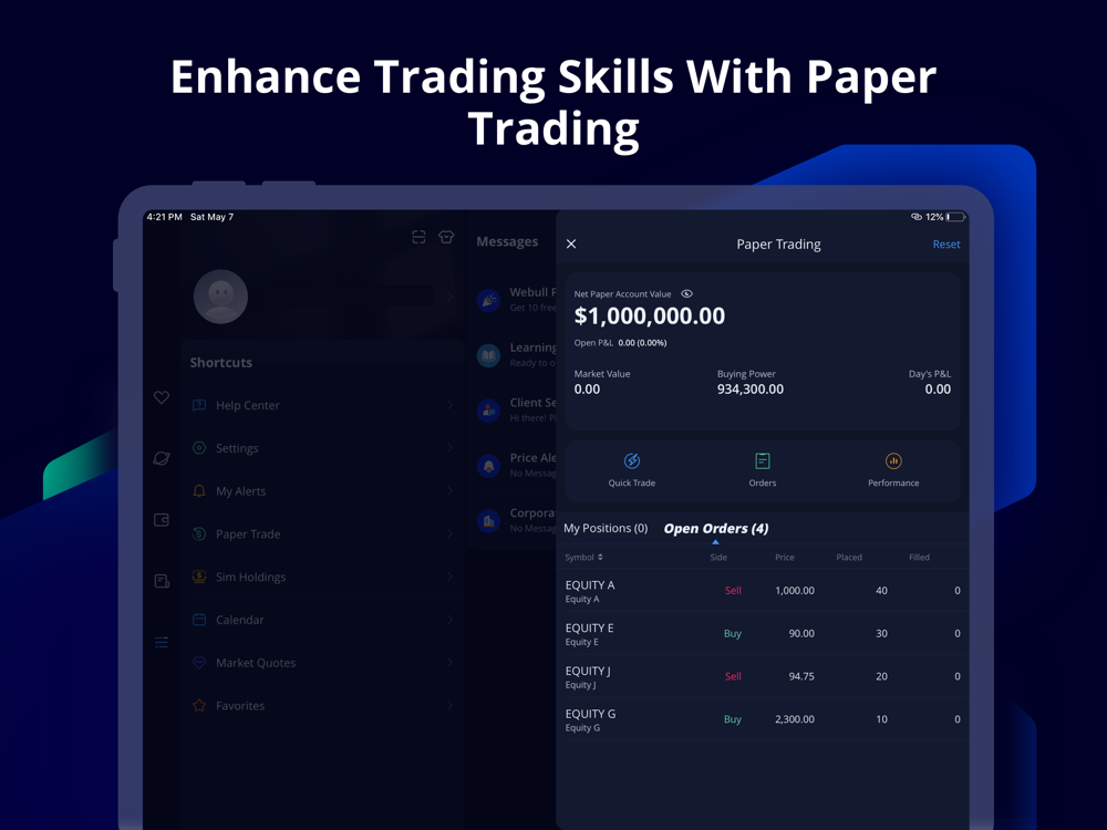 - Practice & explore trading methods without spending real money with Paper Trading.