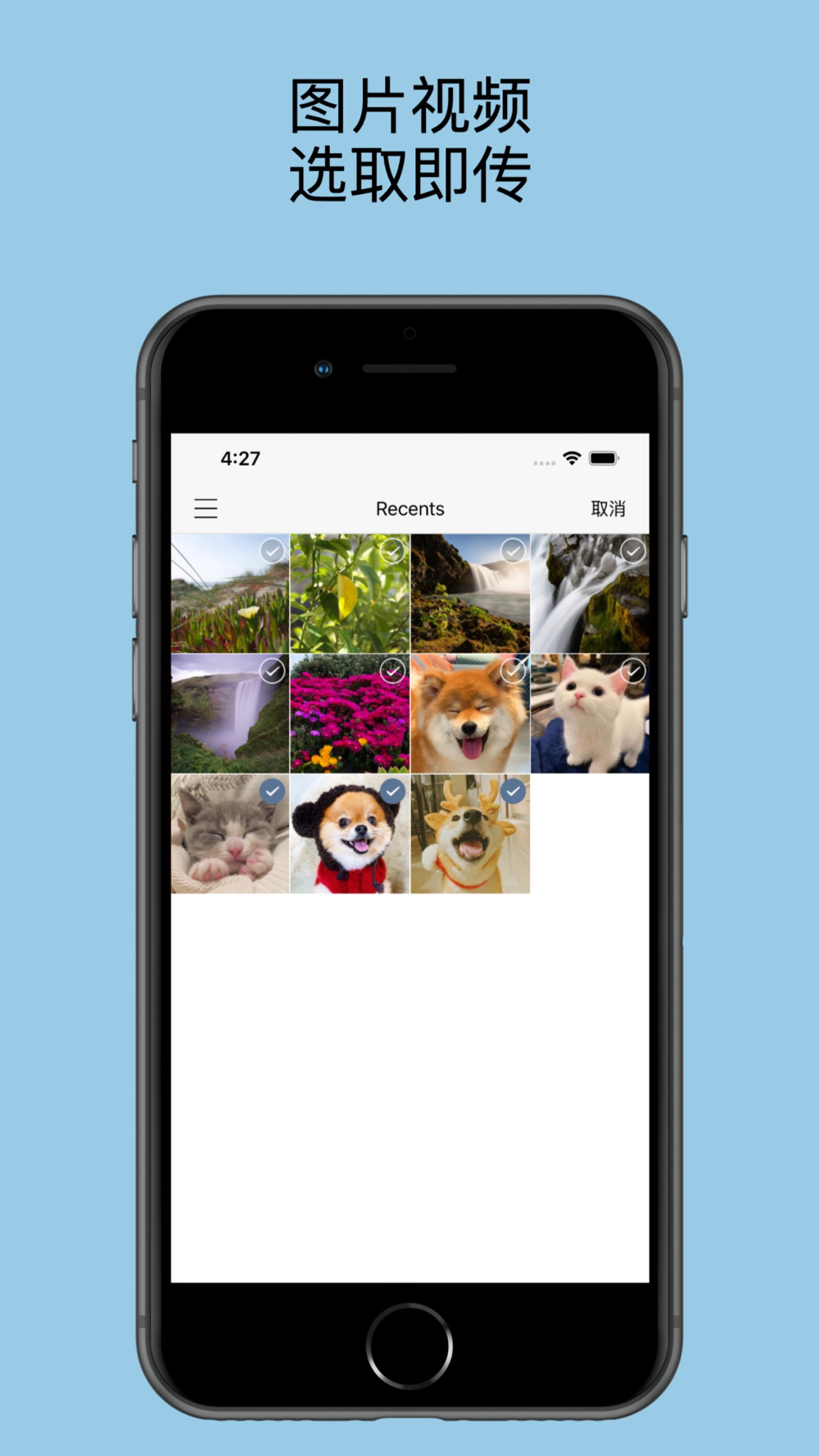 以最简化的方式传输手机里的图片,视频至电脑。局域网传输图片、视频的极佳选择。以最符合直觉操作,完成图片传输,高效快捷。