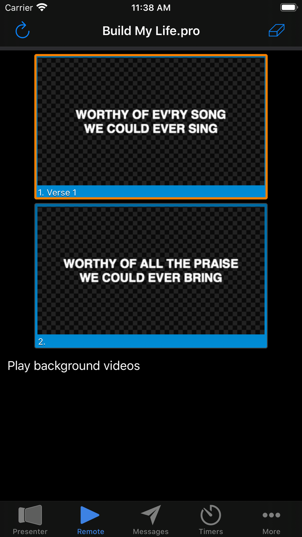 • Control presentations using the familiar grid layout that you're accustomed to from ProPresenter