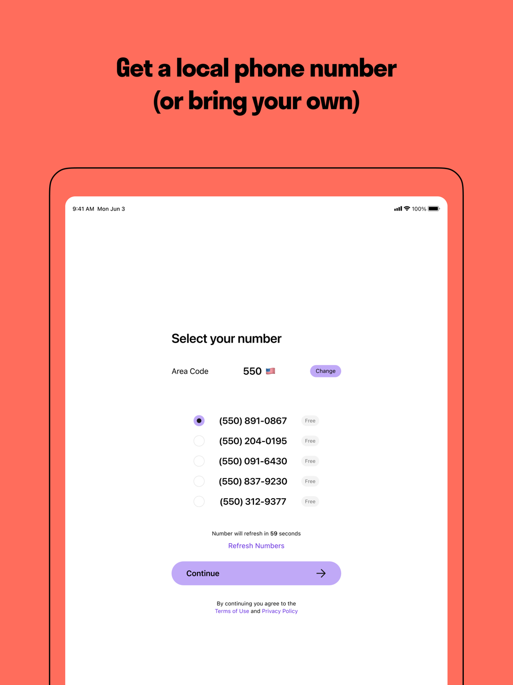 Communication should be without limits. Stay connected to what matters most with unlimited texting and calling, without the bill. Download the TextNow app, pick a free phone number (or bring your own) with the US area code of your choice, and start calling and texting now.