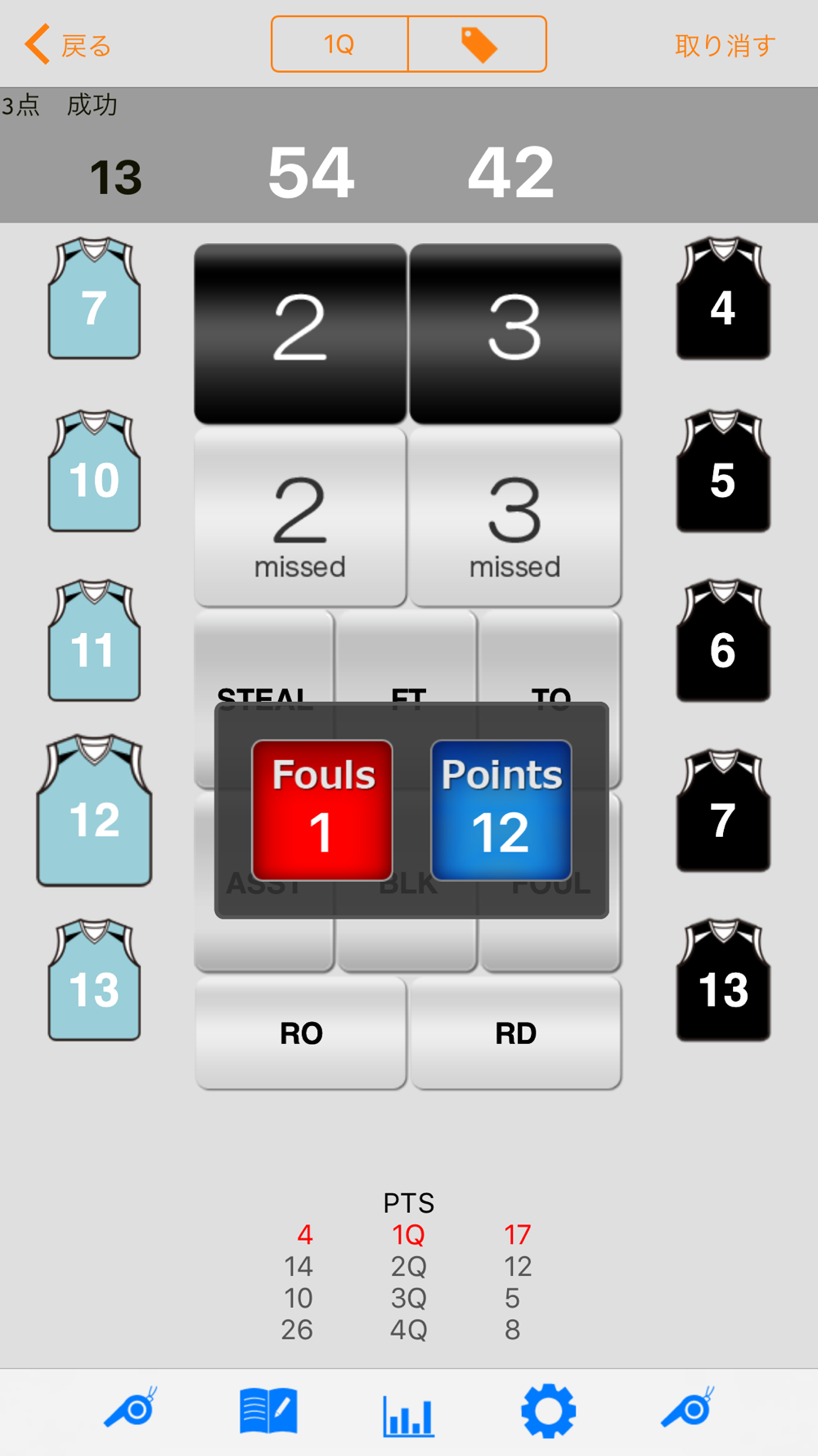≫ ターンオーバーとスティールも記録できれば(対応済み)