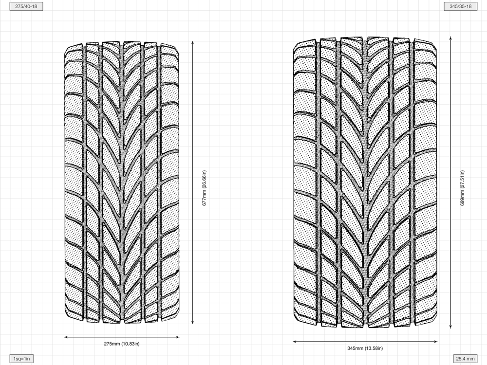 Provides the user a list of compatible tire sizes and accurately indicates the differences in both tire width and tire diameter.