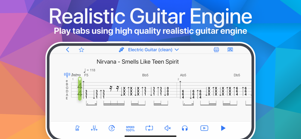 • Realistic Guitar Engine. Learn and play along with Songsterr.
