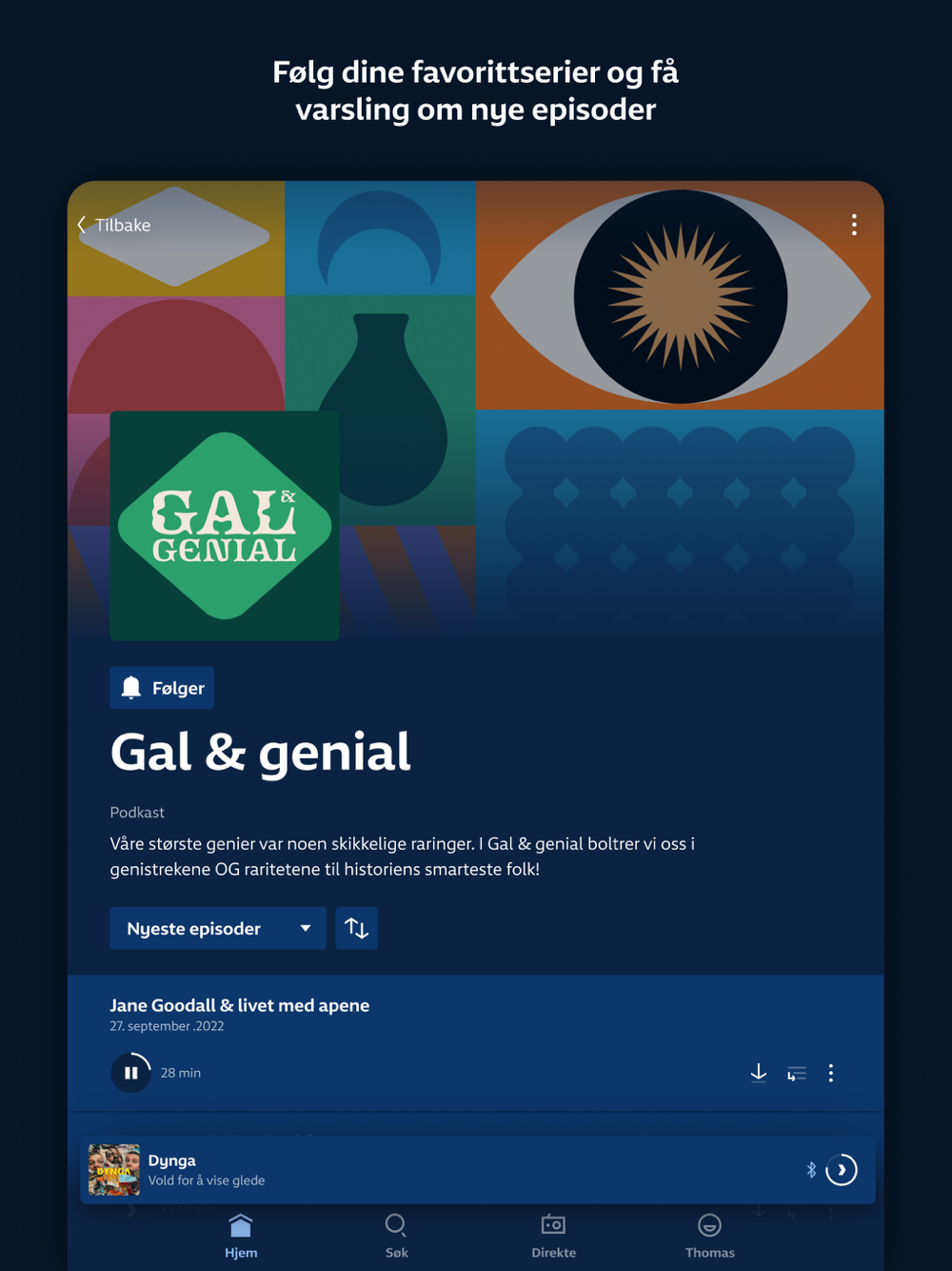 Hør våre anbefalte podkaster, bla gjennom kategoriene, eller finn det du vil høre ved å søke. Appen husker hva du har hørt på tvers av alle enhetene dine, og du kan enkelt spole til avsnittene du ønsker å høre. Du kan laste ned podcasts for å lytte offline, og favoritt-markere de seriene du liker best.