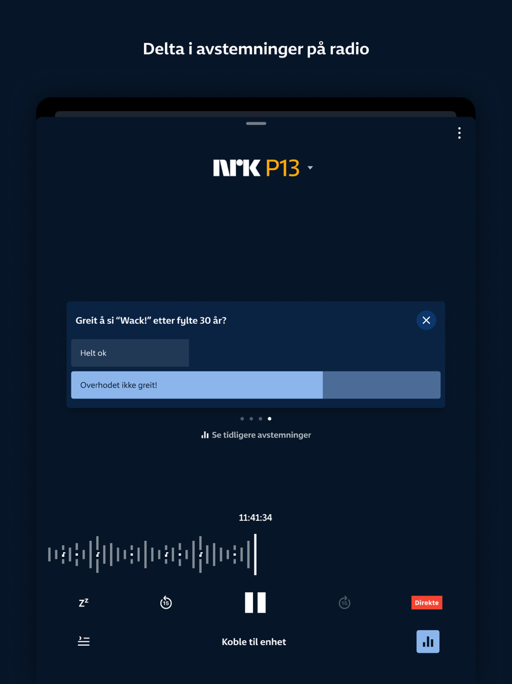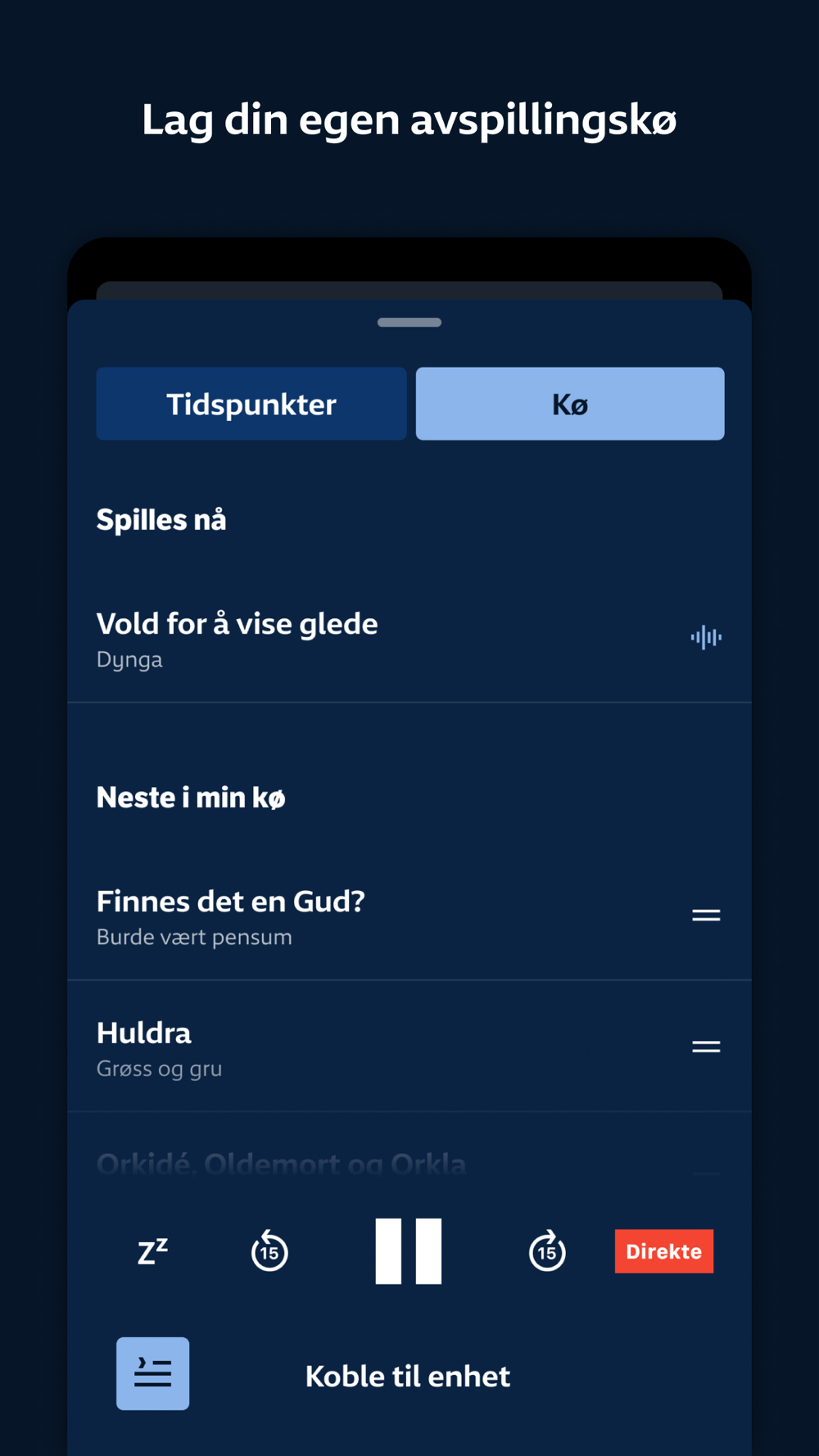 NRK Radio-appen lar deg enkelt lytte til alle NRKs podkaster, direktekanaler og opptak av radioprogrammer.