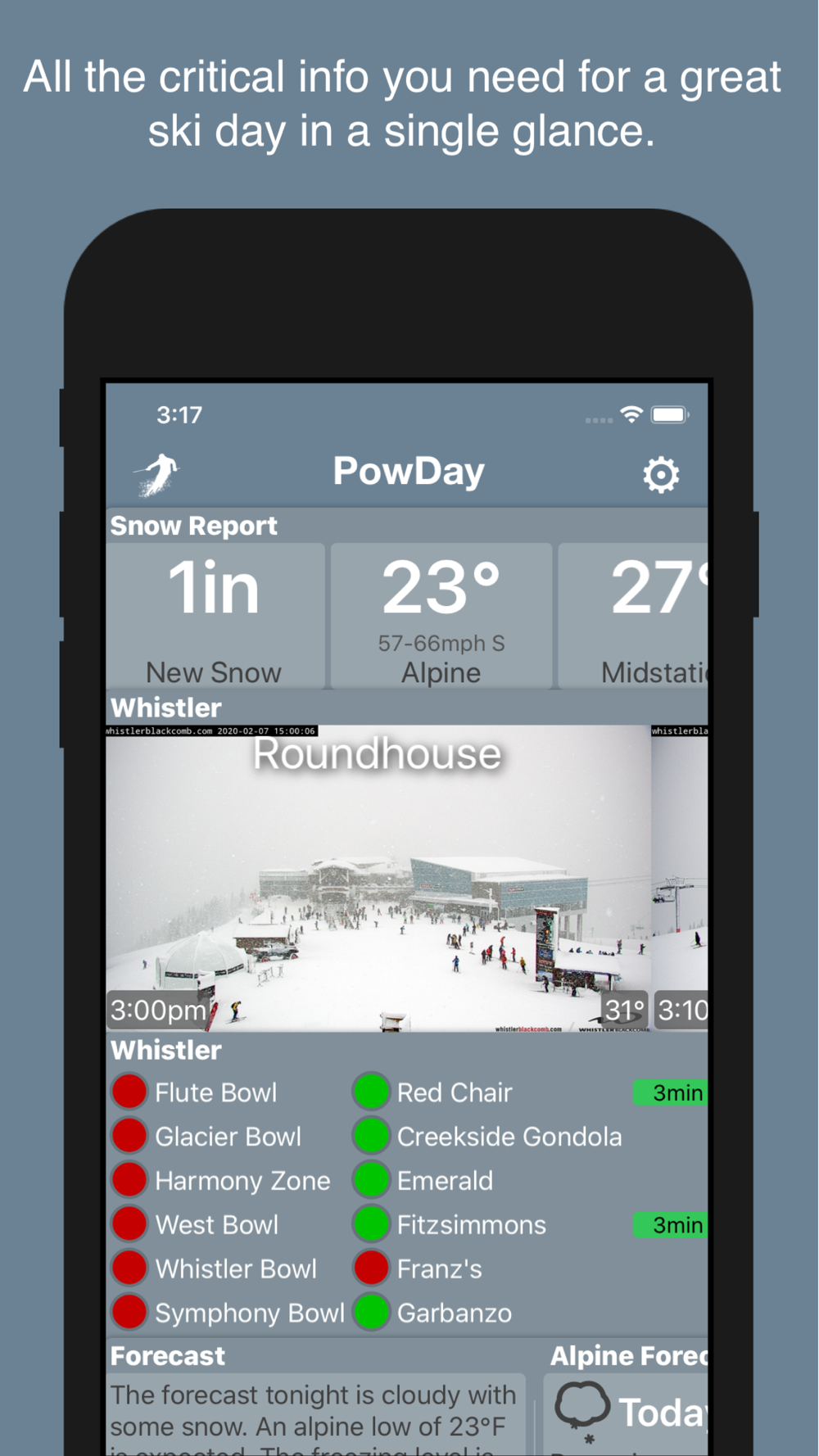 PowDay is your ski-day companion for Whistler Blackcomb.