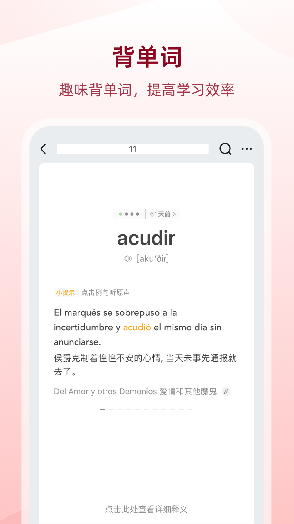 - 文件阅读功能,在《西语助手》中即可阅读文件,支持单词长按查询;