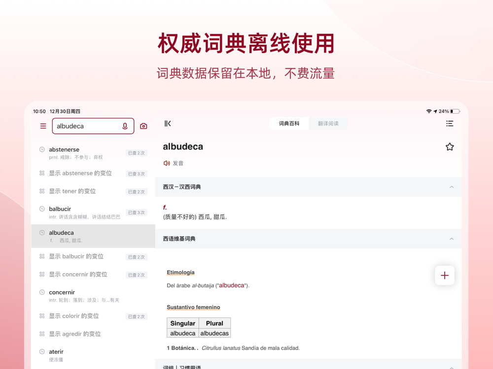- 支持iPad分屏功能,可以一边浏览网页一边查词;
