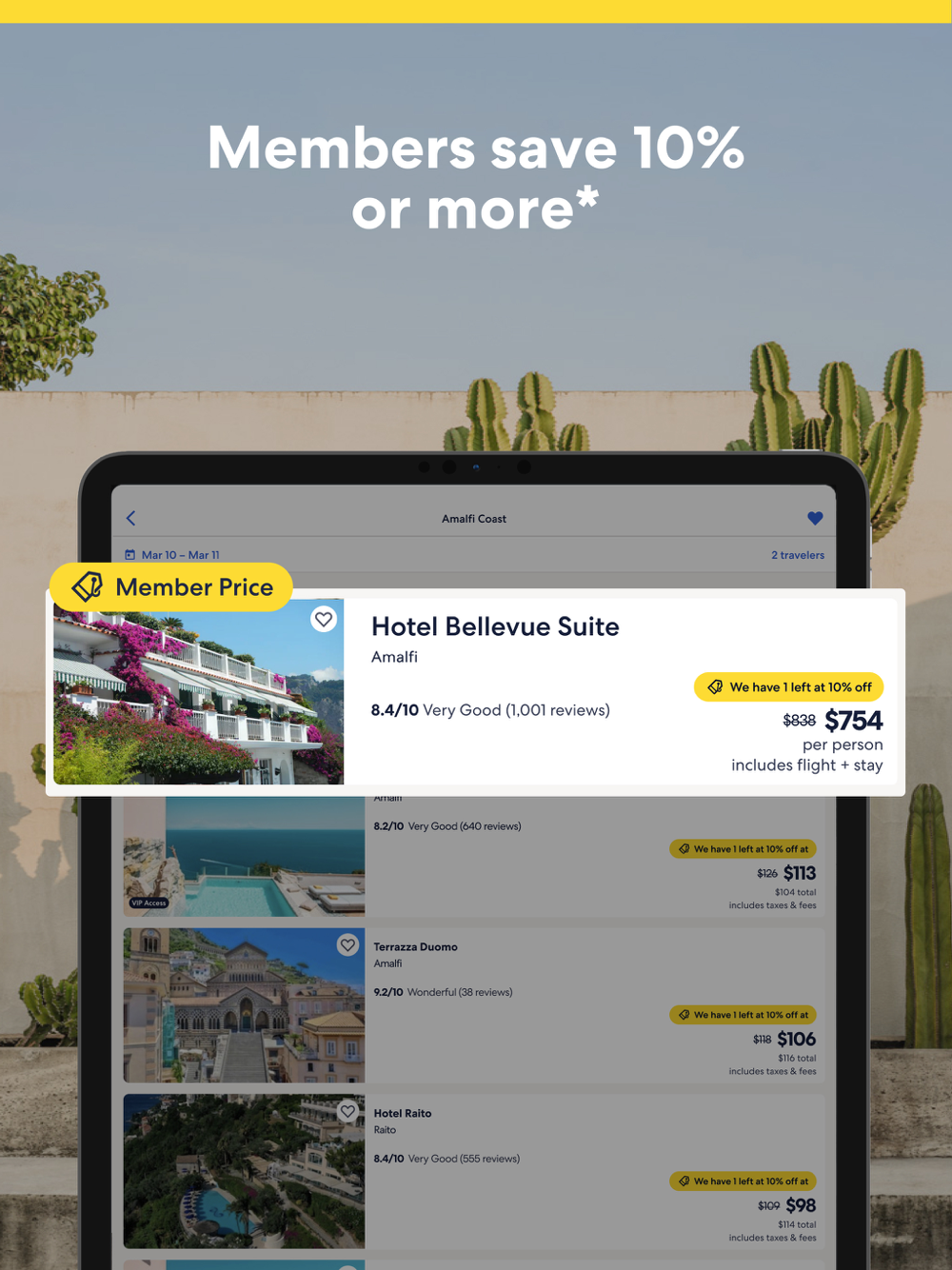 - Instantly save 10%* or more on over 100,000 hotels worldwide with Member Prices.