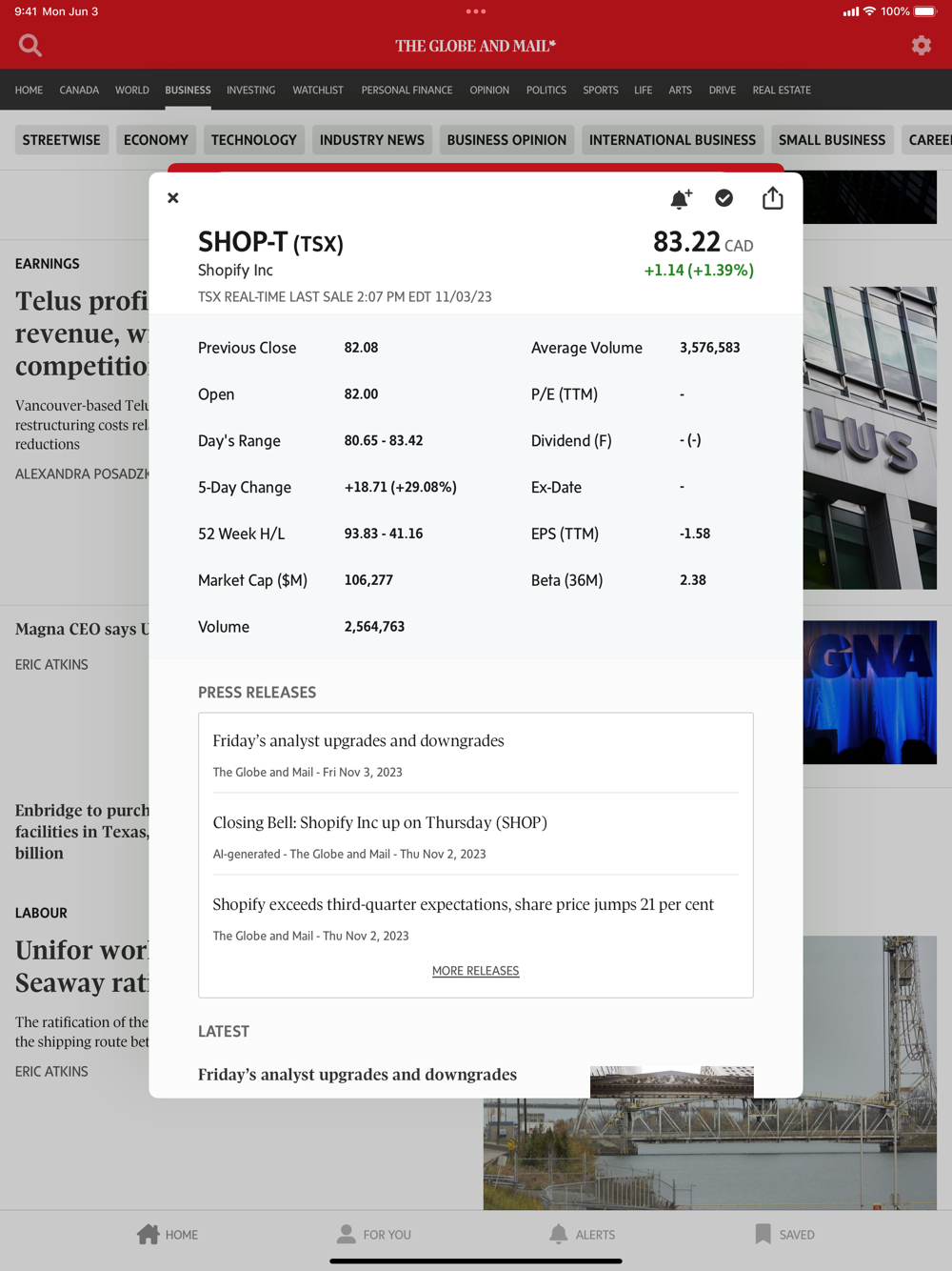 • All Globe and Mail articles and sections, including subscriber-only features with a digital subscription