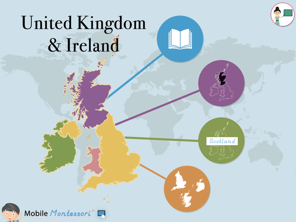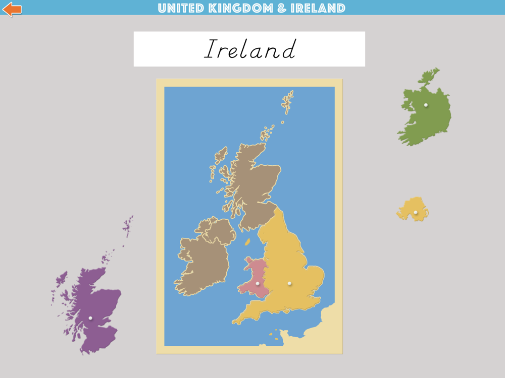 Learn the names and locations of all the countries in the United Kingdom with this app that beautifully complements the geography materials used in the Montessori Classroom!