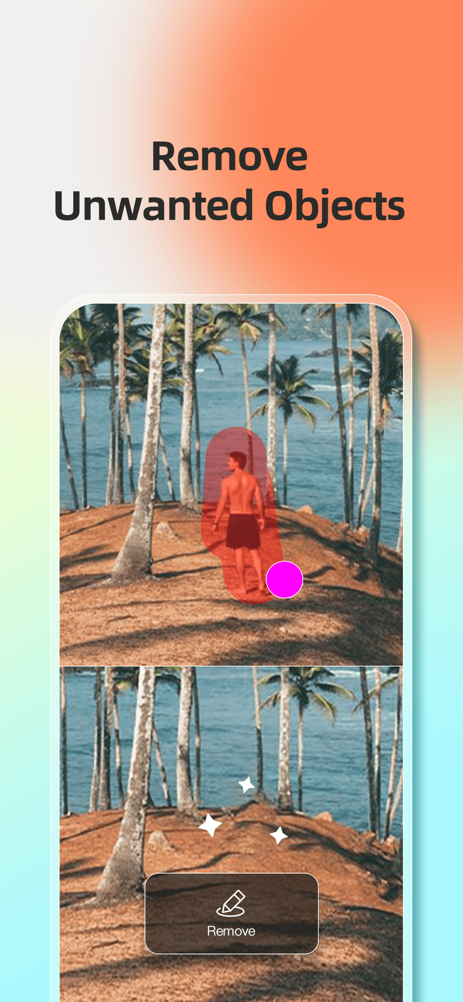 With Fotor's magic eraser, quickly remove an image's unwanted objects, such as remove text, remove people, erase acne, erase building, and more. Our watermark remover is a good choice for better creation. Automatically remove watermark, and get perfect image in one click without losting image quality.