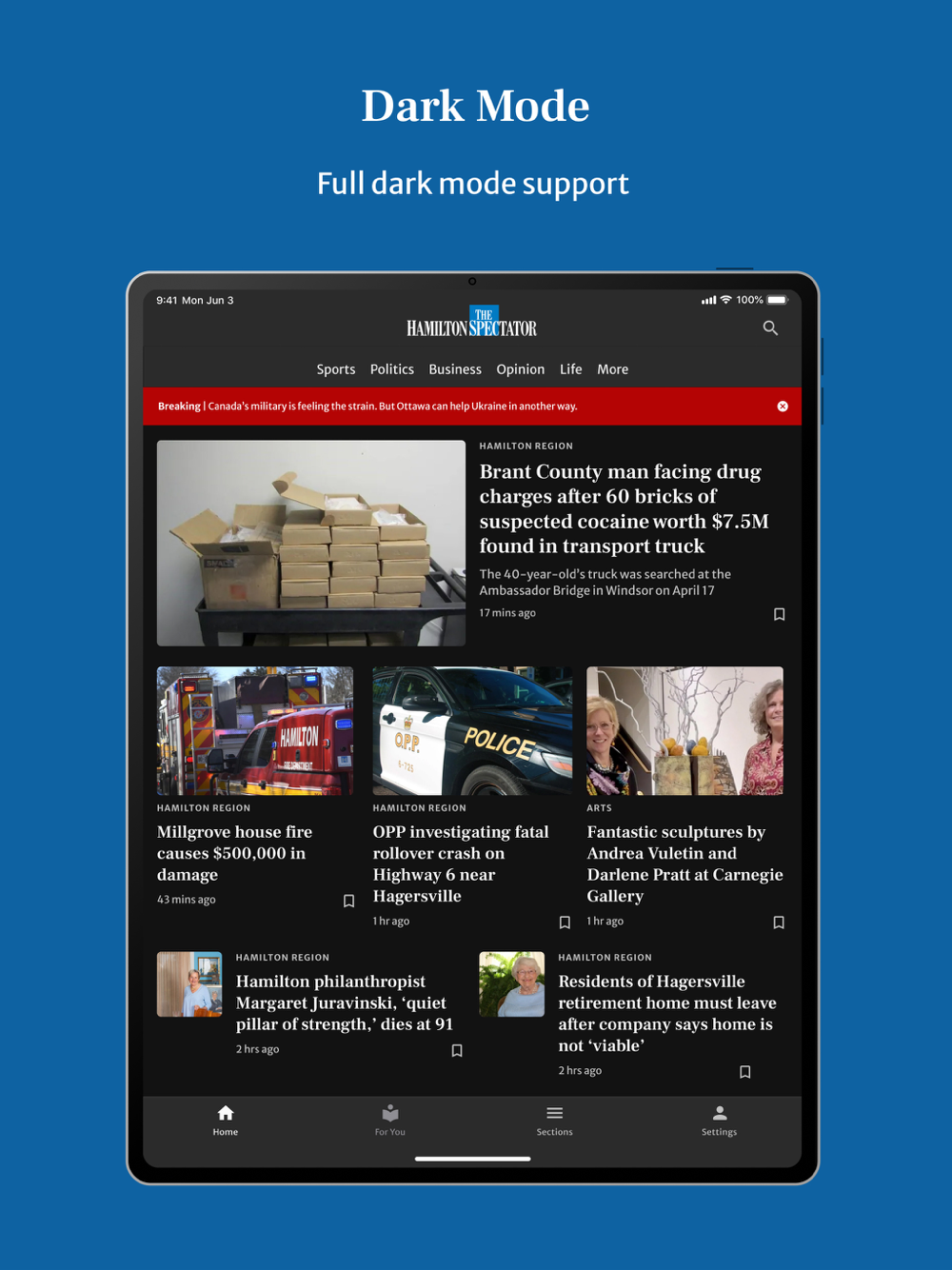 From community and local coverage to global issues and breaking news, the Hamilton Spectator reports on topics that matter and affect the day-to-day lives of our readers. Download the Hamilton Spectator app now to receive the best features of the Spectator’s website, all within the palm of your hand.