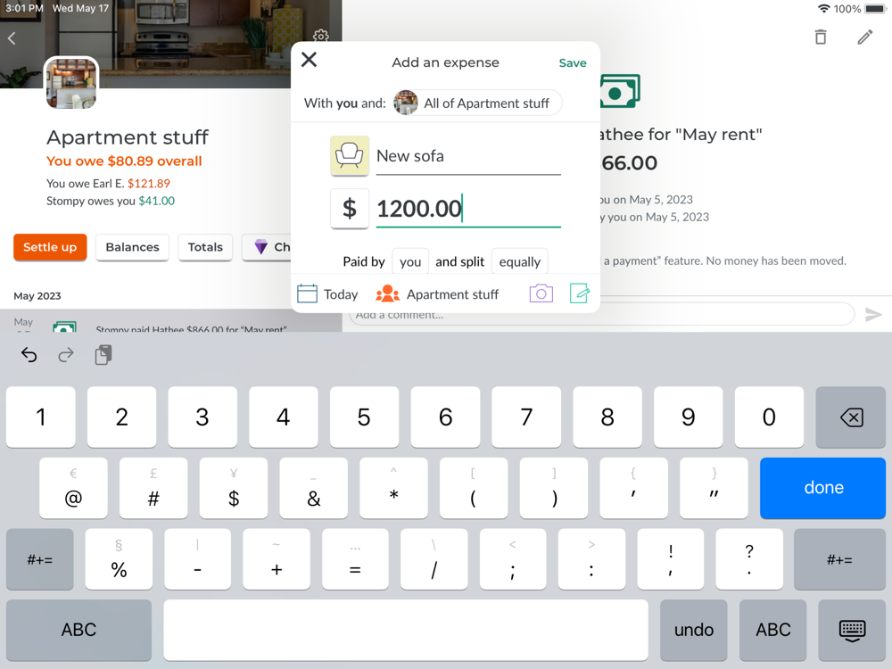 - Expenses are backed up online so everyone can log in, view their balances, and add expenses
