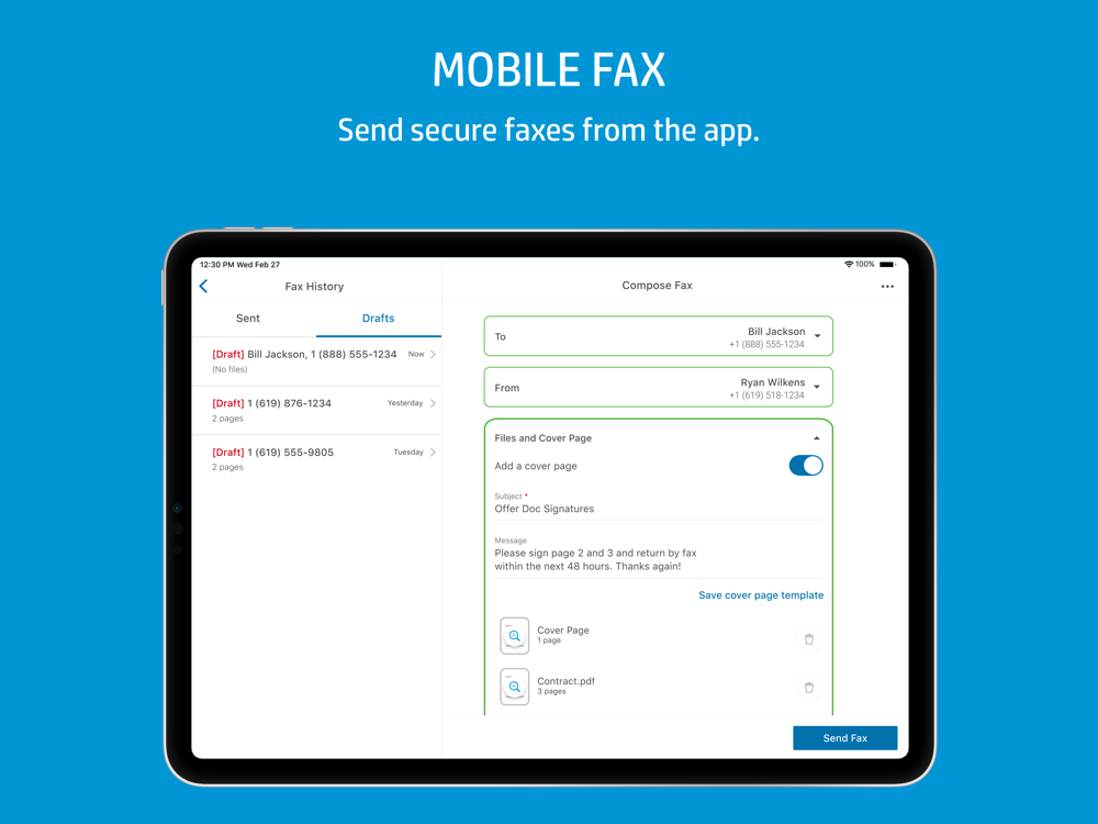 · It’s easy to send secure faxes from the app with Mobile Fax