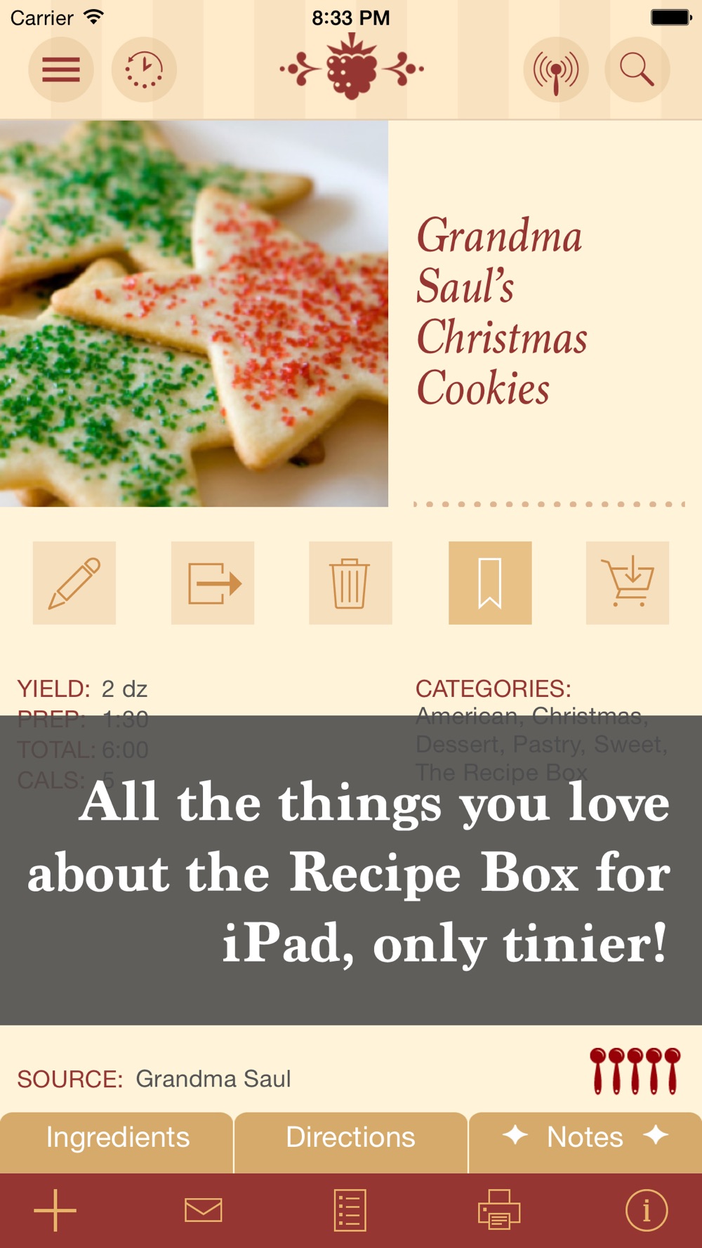 Create, display, and manage your very own recipes with one of the best loved recipe managers in the app store. The Recipe Box To Go lets you pull up your recipes whenever the mood strikes, so you can shop for tonight's dinner or share with friends. This 21st-century cooking tool helps you get your recipes into a quickly-sorted, easily shared format that can’t be misplaced, covered in stains, or catch on fire.