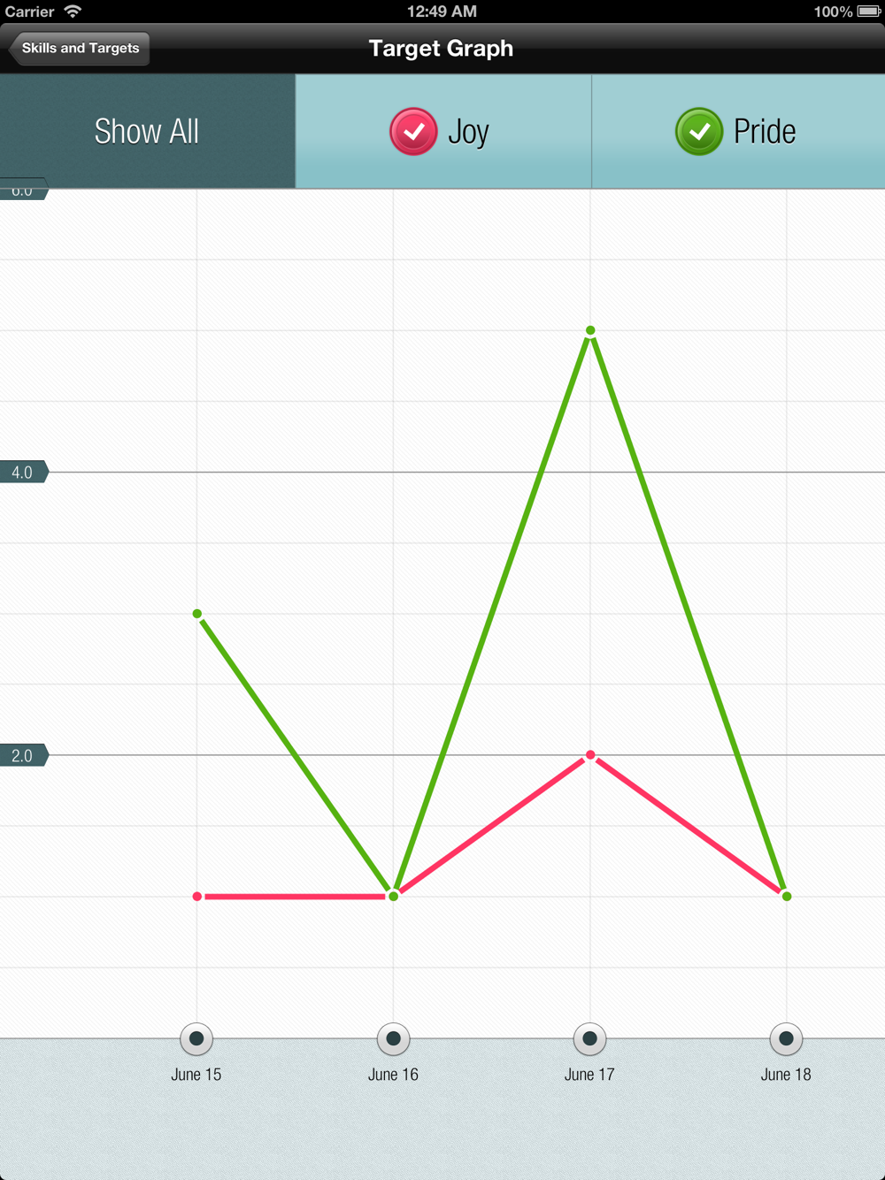 - Complete customizability. Are you working on something different or do you have a different understanding of a particular skill or emotion? Change it. It's that easy. You are not wedded to the way it's presented in the app. It's all completely customizable.