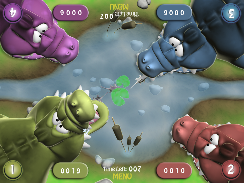 Starving Gators is a tabletop fish chomping board game for the iPad that allows for 1 to 4 players can play at a time. Great to play with your family and friends.