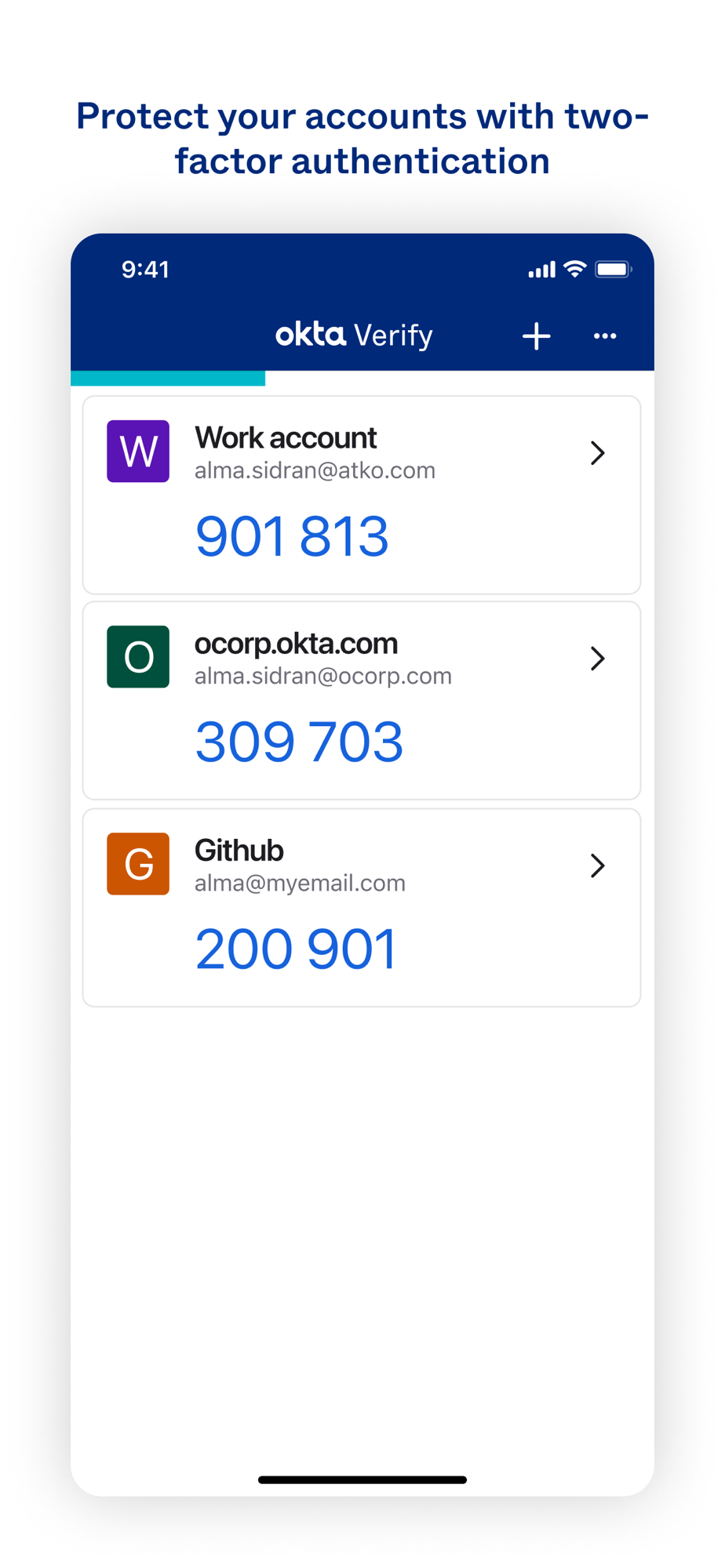 Okta values your privacy. Okta Verify does not store any personal information. Your organization will not be able to view personal information after your device has been registered.