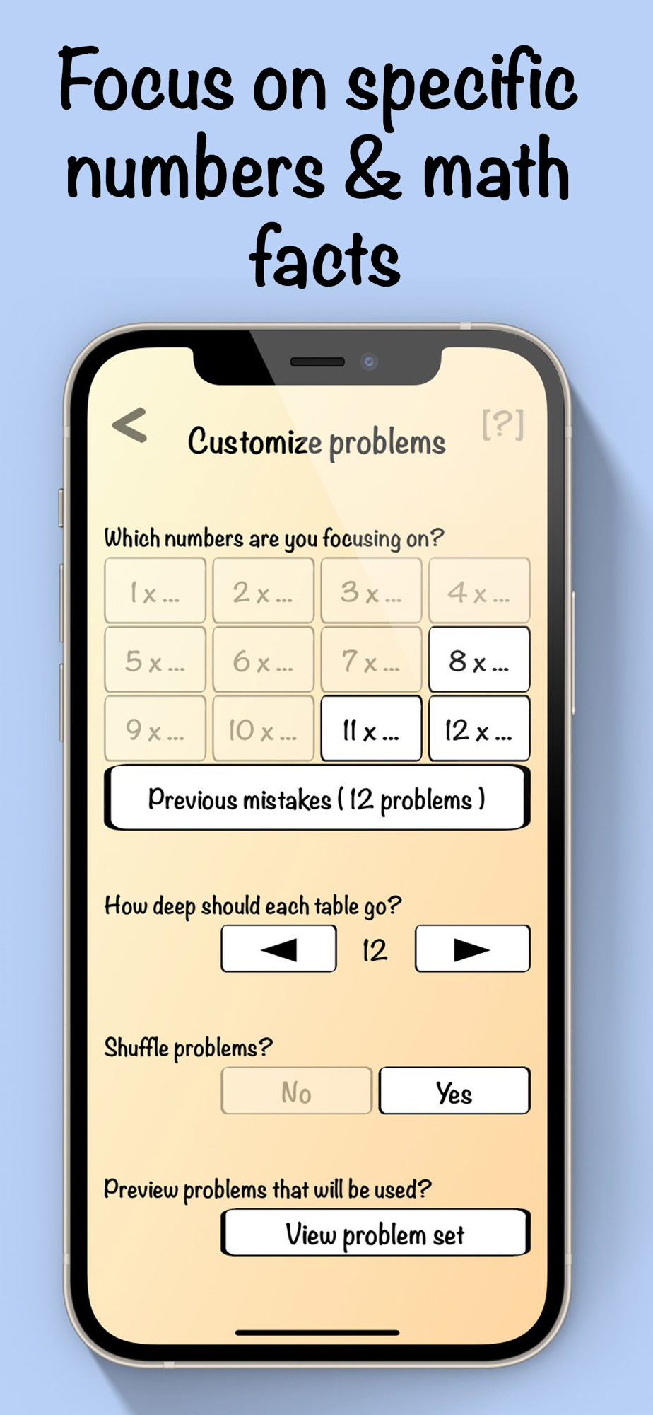 Mental Math Cards supports all four of the major arithmetic operations - as well as a mixed operations mode that randomly shows all types of problems.