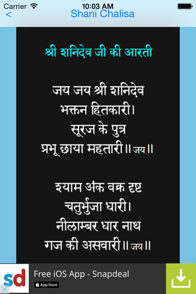 Reciting Shani Chalisa relieves one from all worldly troubles caused due to unfavorably placed Shani in one's astrological chart. Delay in marriage or business problems or marital problems can be removed by reciting 'Shani Chalisa' 21 times daily for 21 continuous days.