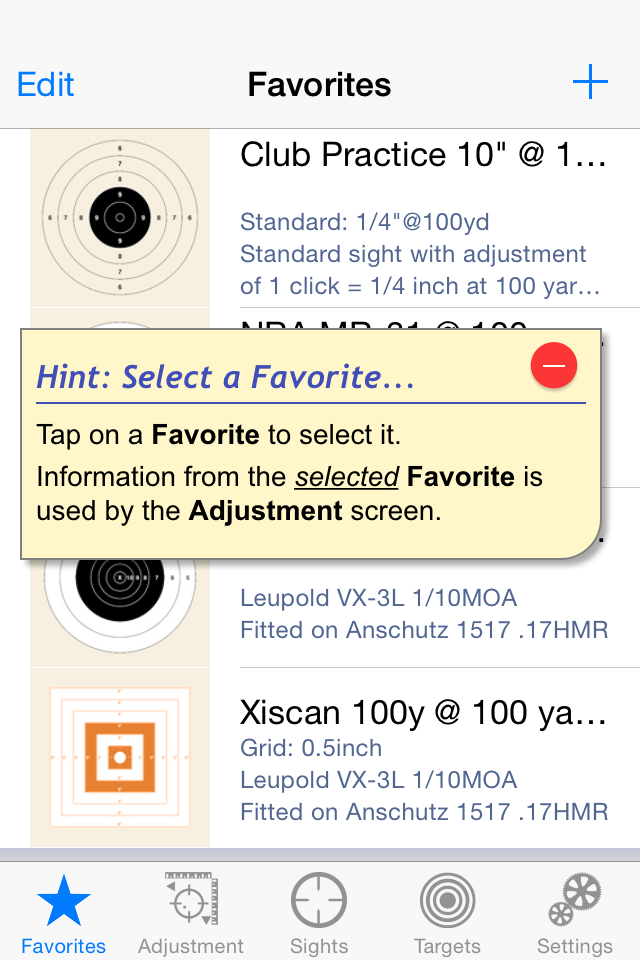 And to make it easy to set up your sights time and time again, you can quickly create favorites to hold the common combinations of sights, targets and distances that you use.