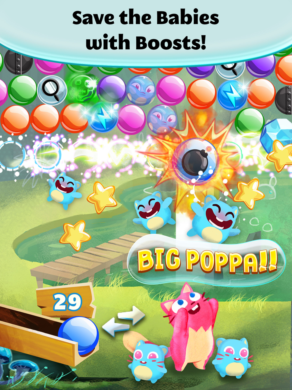 Travel across an amazing world filled with color and variety on a saga to rescue the trapped Babies! Shoot and pop bubbles to rescue the Babies trapped inside, and create combos to score even higher. As you blast more bubbles, you’ll unlock new areas filled with more challenges!