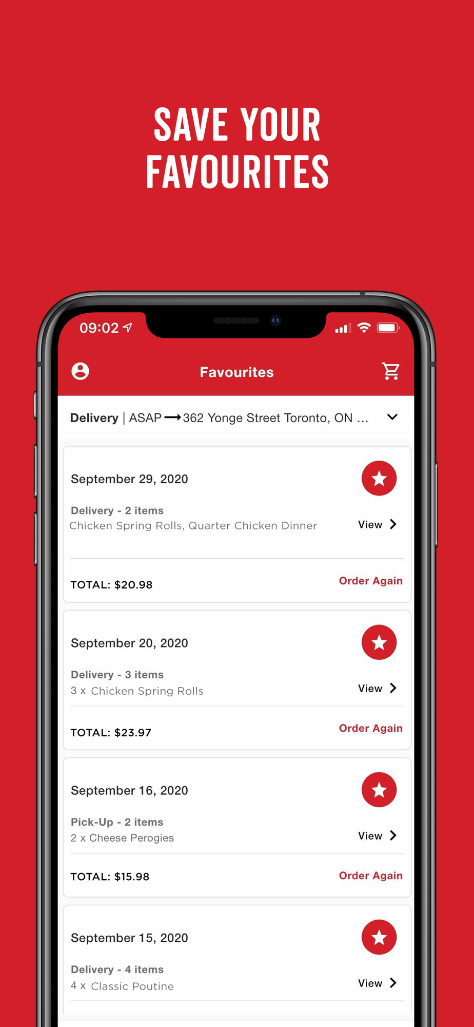Favourite your orders for easy re-ordering the next time, and the next time, and the next time...