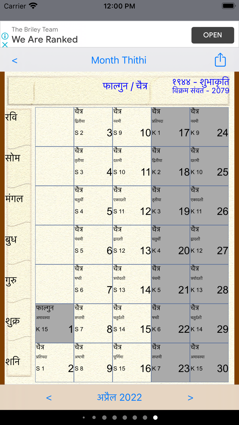 5) A complete Panchang for the two centuries, 2000 and 2100 (1 Jan 1900 through 31 Dec 2099) is available as an in-app purchase.